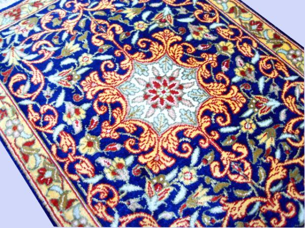 こちらの絨毯は、クム産の高級シルク100%の手織り絨毯です。