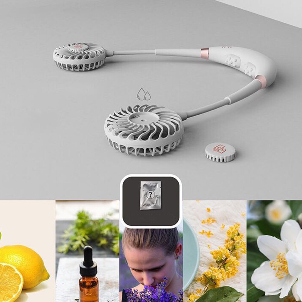 ネッククーラー 首掛け扇風機 mini冷風扇 冷却ファンクーラーマッサージ機能カラフルな led アロマ機能 【色:2色】※送料無料