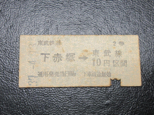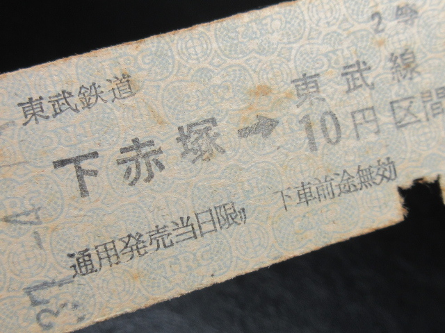 ★国鉄乗車券・硬券『昭和37年4月13日「東武鉄道」下赤塚→東武線10円区間・矢印式乗車券』キップ切符・レトロ・コレクション★JNR1169