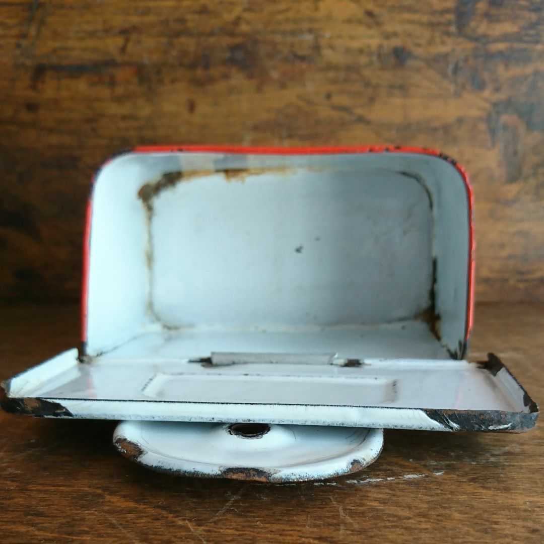 大変古いホーロー製品です。ホーロー特有のサビ、アタリ、ハゲがありますが、アンティークホーローの味わいとしてお楽しみいただければと思います。状態や時代についてはあくまで素人判断ですので、画像でご確認ください。