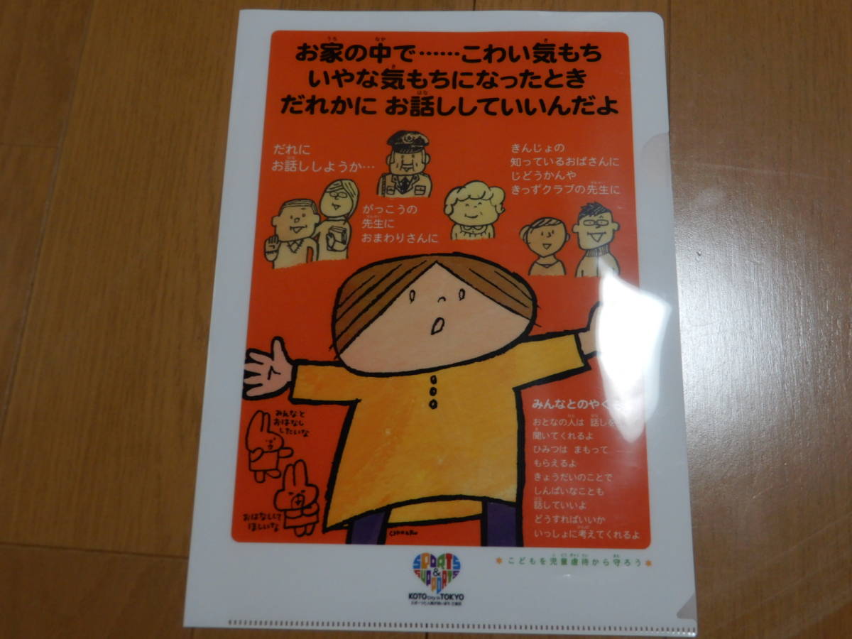 ●非売品・レア こどもを児童虐待から守ろうクリアファイル-スポーツと人権が熱いまち 江東区