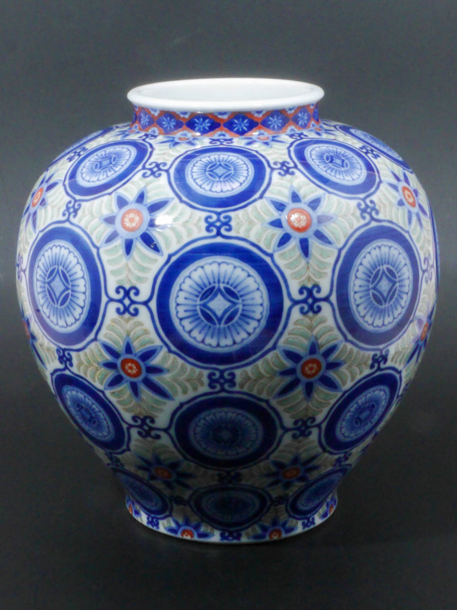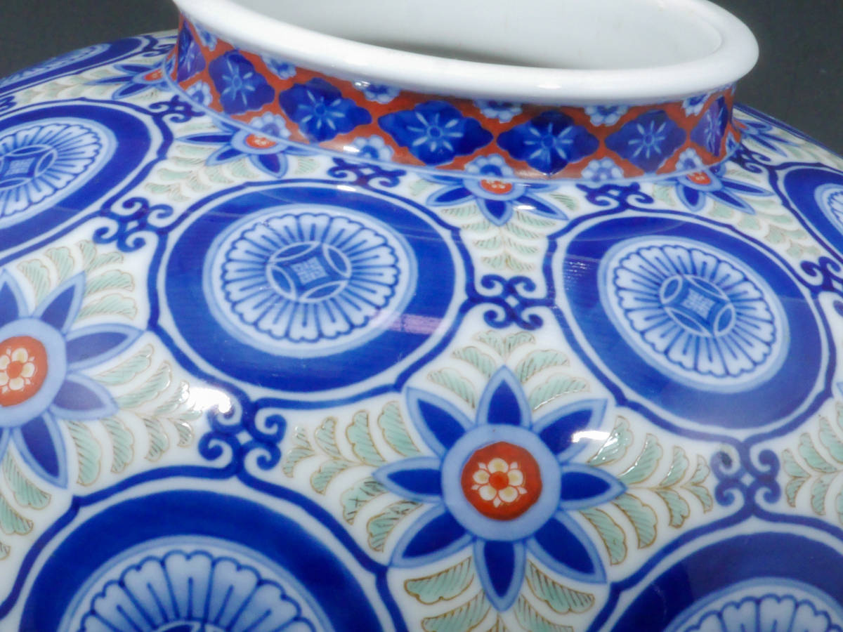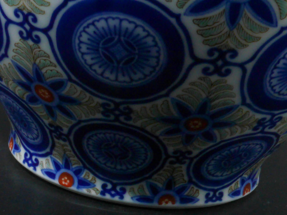 【値下げ交渉有り】 オールド 香蘭社 秀逸作 染錦 花唐草 丸花 有職 更紗文 花入 花瓶 壺