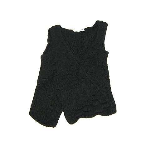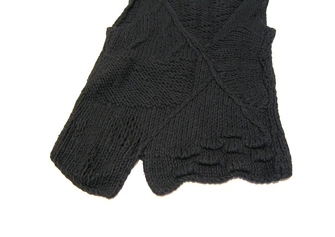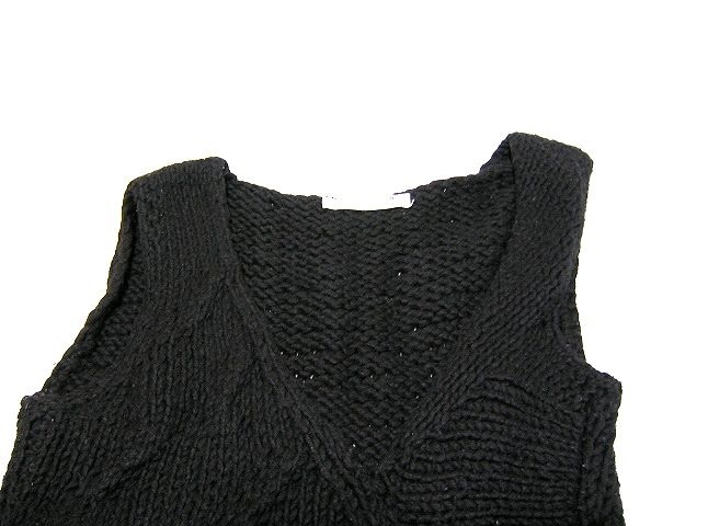 ITALY製のNIUのアシンメトリーノースリーブニットです。 LUMIERE BEAMS 購入品です。 ざっくりニットに独特な編み地が施されています。 雰囲気のあるアシンメトリーデザインです!! (サイズ)S・肩幅34㎝ 脇下身幅37㎝ 着丈56㎝ (素材)ウール80% ナイロン20% (カラー)ブラック (商品状態)使用感があり、多少の毛玉があります。 |