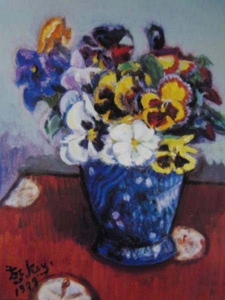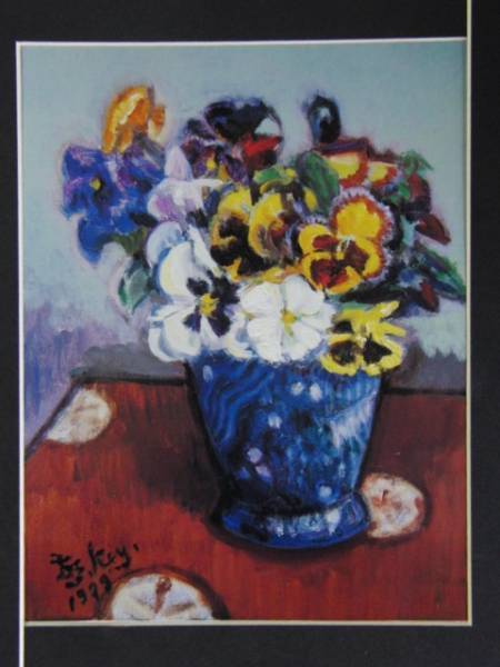 小山 敬三、パンジー、高級希少画集画、版上サイン入 新品額付 送料無料、meg
