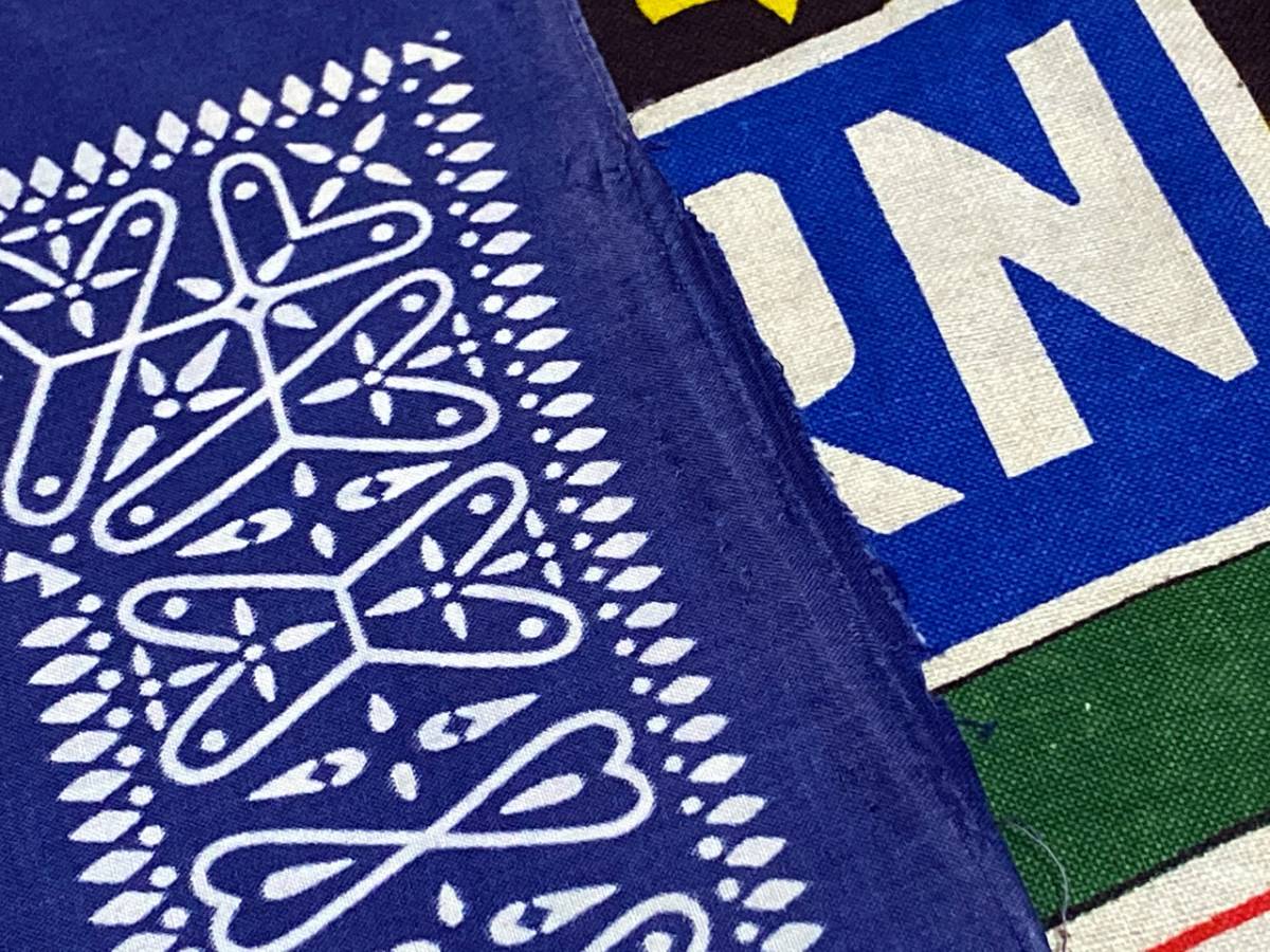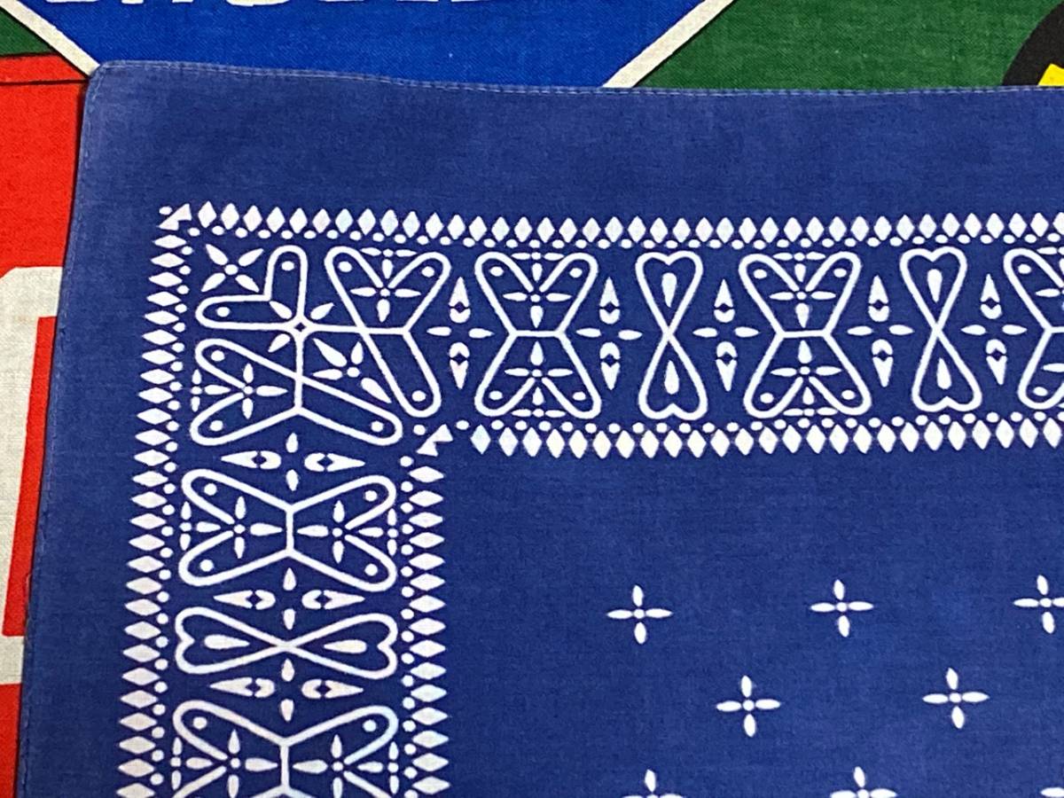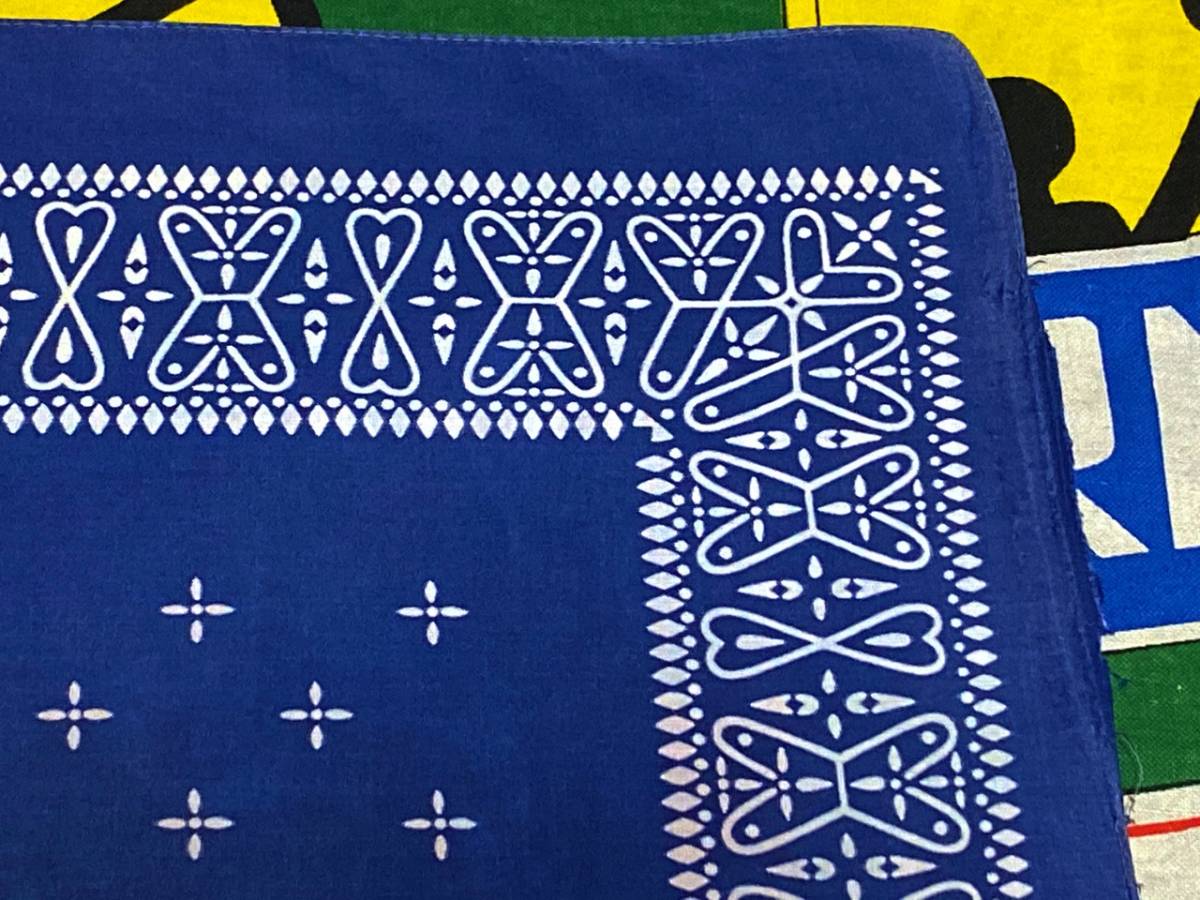 バンダナの端には品質保証を表す表記が入っているはずですが、こちらは何のプリントも施されておりません。