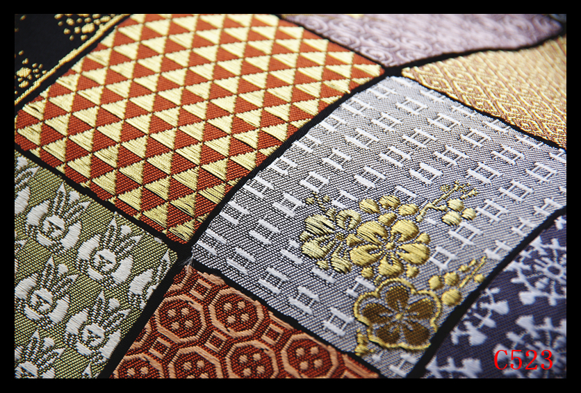 柄が単調に見え、、動きがなく、、柄一つ一つの魅力が見えてきませんが、、そのような事にならないようにアップの画像でもお分かりのように 四角の枠は 紙をちぎったような和紙の上に施された柄のような・・不規則なラインで表現することで柄一つ一つの違いがより分かるように 手を掛け織り上げられております!