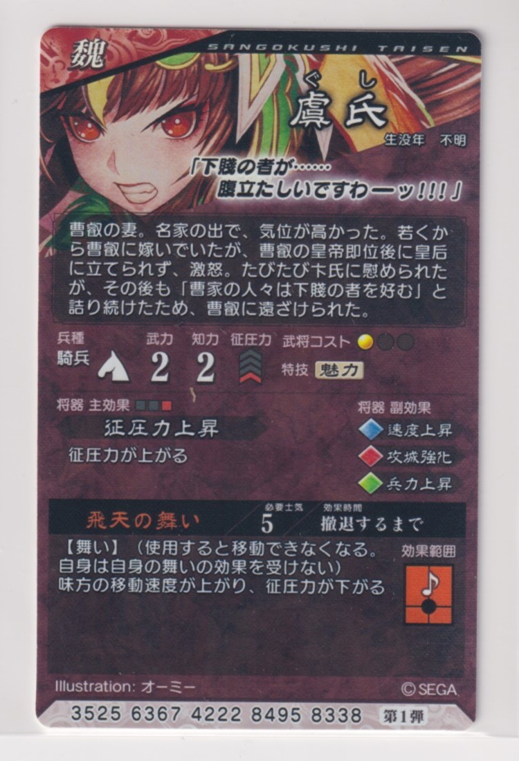 三国志大戦4 魏 1弾 R 虞氏 飛天の舞い 征圧力上昇 コレクション用