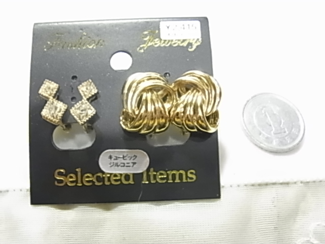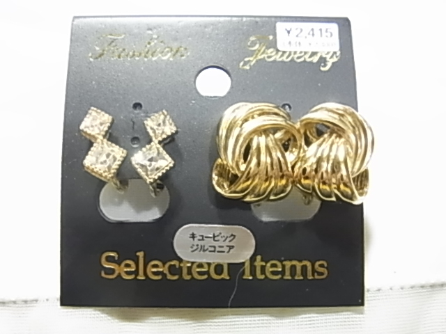 新品2点セット キュービックジルコニアとゴールドカラーのデザイン 定価税込2415円 お得 イヤリング◆