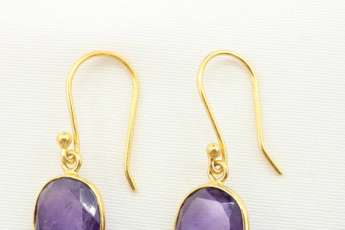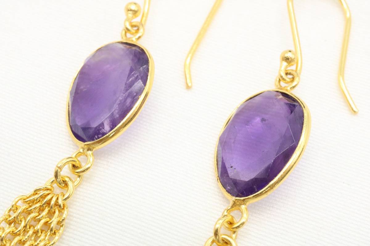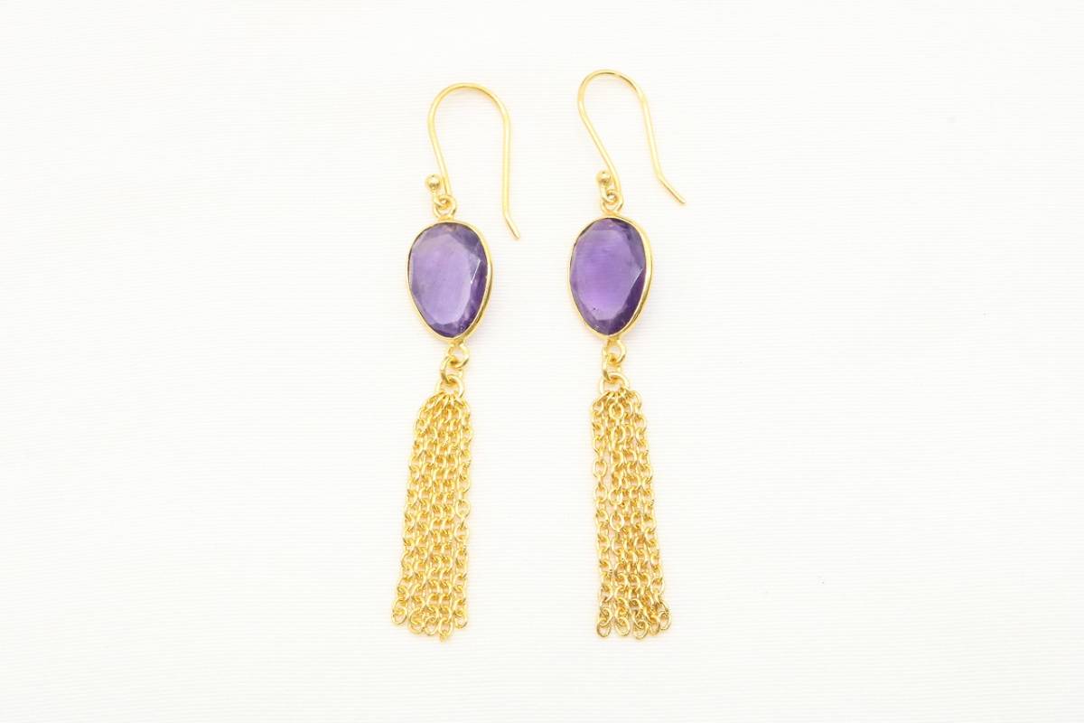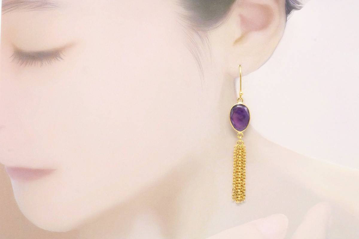 ■ 【U561】ガラス アメジスト チェーン タッセル ロング ピアス フック ゴールドカラー ティアドロップ カットストーン 揺れる お洒落【送料全国一律198円】