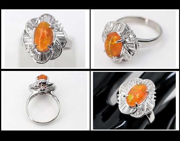 商品名 | Pt900 ファイアオパール2.28ct ダイヤ1.00ct リング 17号 新品仕上げ済み |