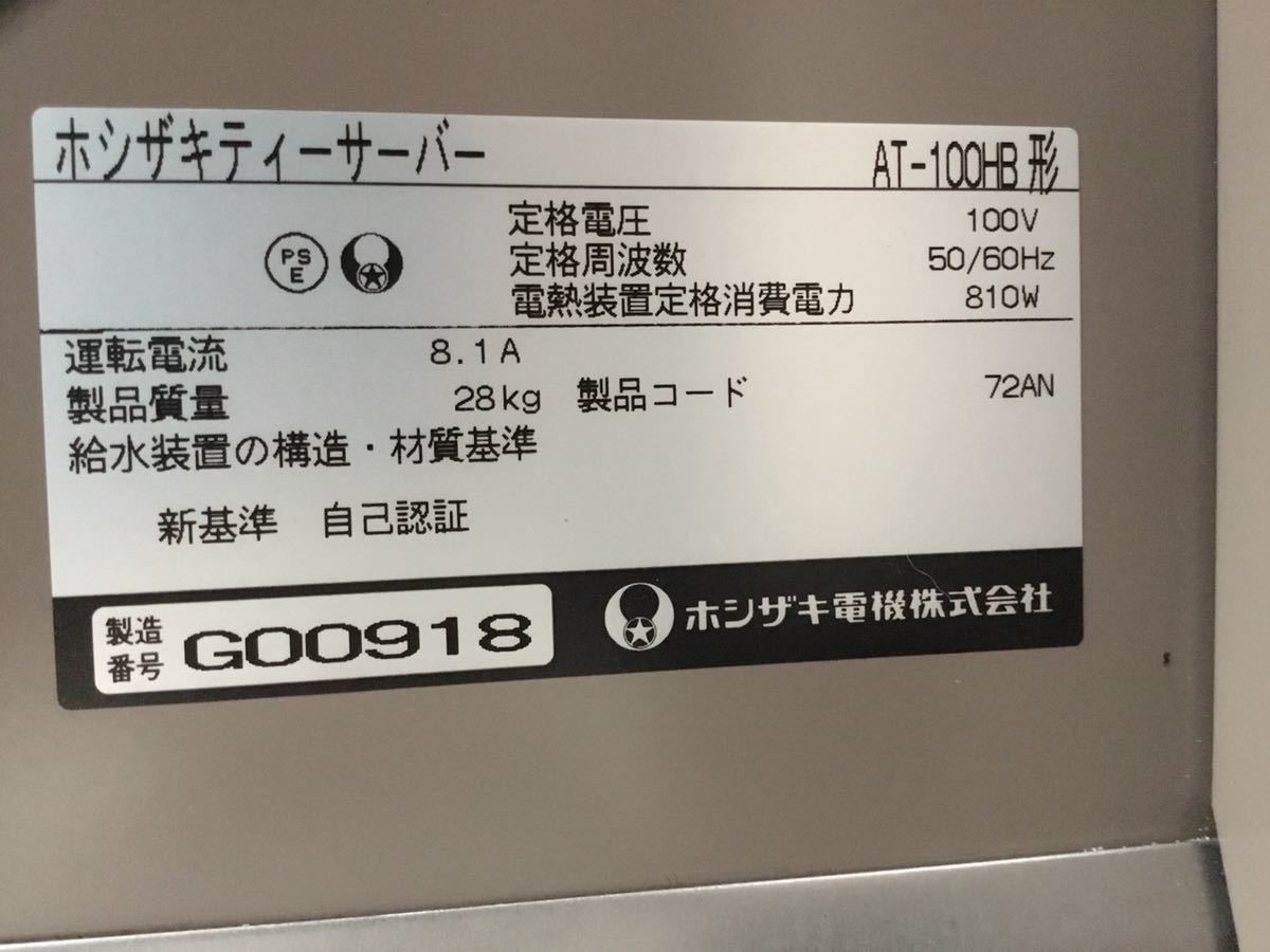 2007年製 ホシザキティーサーバー AT-100HB形 キャビネットスタンド APC-100B形とのセット 中古実働品