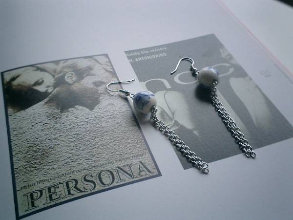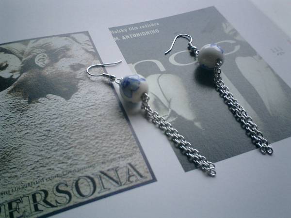 恋愛映画の余韻・・シリーズです♪ニュアンスのある白でまとめたピアスです♪12ミリの濃紺の花柄のチャイナビーズにチェーンを合わせてシックにロマンチックしています♪長さは8センチ位です♪♪お揃いのブレスレットやネックレスも出品しています♪シンプルで長く着けられるデザインを考えて作りました♪ハンドメイドをご理解頂いてノークレーム、ノーリターンでお願いします♪