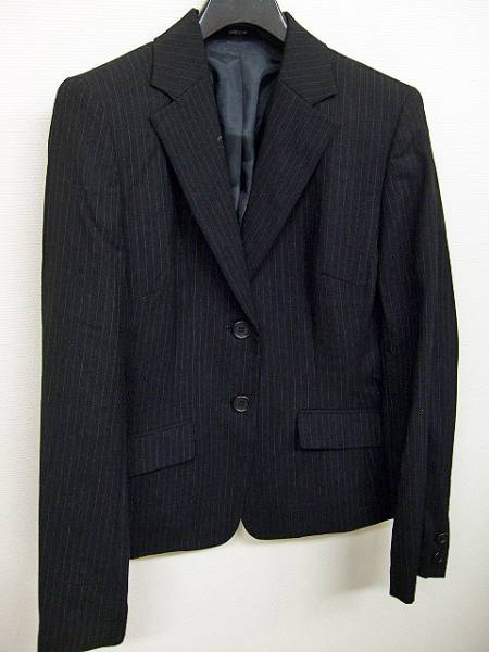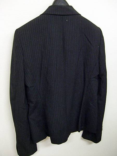 COMME CA ISM ストライプジャケットです。黒地にピンストライプが入ったジャケット。◆表地 毛99% ポリエステル1%◆サイズはLで着丈約58.5cm・肩幅約38.5cm・袖丈約62cm・身幅約43cmです。◆USEDです。状態は綺麗ですが、虫食いなのか?小さな穴いくつか有りますので安価で出品します。◆