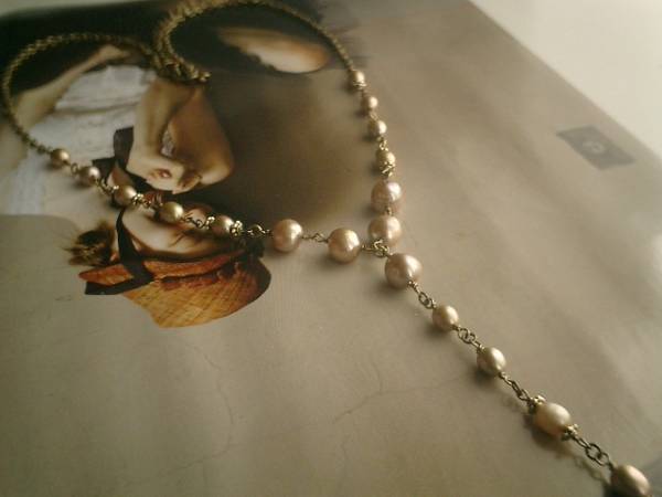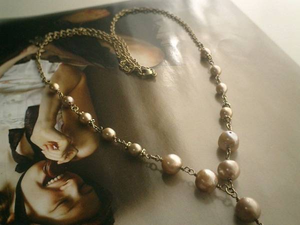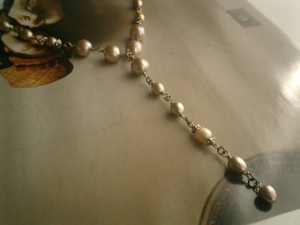シック・パンクシリーズです♪パールに恋して・・大人色のシャンパンゴールドの淡水パールのネックレスです♪さりげなく遊びの入ったデザインです♪ラリエット風のデザインでシック・パンクしています♪淡水パールは9ミリ位のバロックと7ミリ位のライス型です♪シックな座金を合わせてアンティークモダンな表情です♪長さは62センチ+アジャスター10センチで最長72センチ位です♪トップは10センチ位です♪♪お揃いのブレスレットも出品予定です♪♪シンプルで長く着けていただけるデザインを考えて作りました♪ハンドメイドをご理解頂いてノークレーム、ノーリターンでお願いします