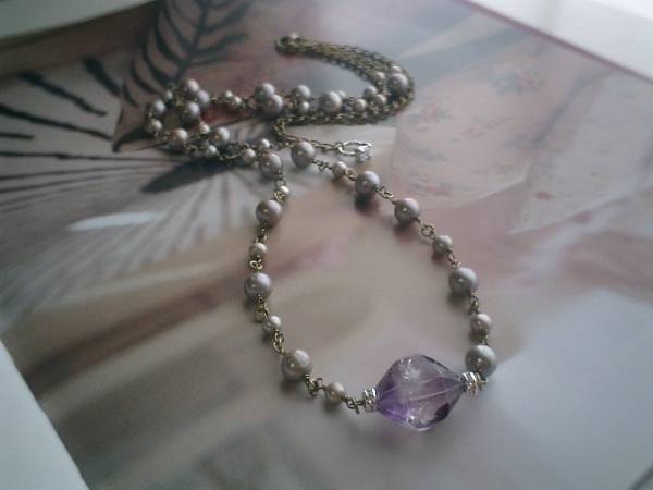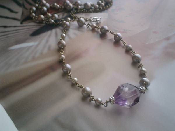 それぞれの恋愛・・シリーズです♪神秘的なアメジストとシャンパンゴールドの淡水パールのネックレスです♪ジルコニアのロンデムでおめかししたアメジストは22×18ミリ位です♪アメジストとシトリンが入り混じった繊細で神秘的な表情です♪アンティークな雰囲気のシャンパンゴールドの淡水パールは5ミリ位と8ミリ位のポテトです♪長さは全長97センチ位で調節自由です♪2連にされても素敵です♪お揃いのブレスレットも出品しています♪シンプルで飽きのこないいつまでも着けられるデザインを考えて作りました!ハンドメイドをご理解頂いてノークレーム、ノーリターンでお願いします
