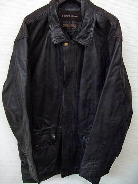 D'HOMME A HOMME 羊革レザーコートです。色は黒。重厚感有りながらも柔らかく軽量で着用しやすいと思います。◆サイズはLで着丈約81.5cm・肩幅約56cm・袖丈約58cm・身幅約62cmです。◆USEDです。レザーのふち等に擦れ有りますが全体に目立つ傷等無く状態良好です!元は着脱可能なフード付きだったようです。(チャックが有って、多少錆が有ります。今は使わないチャックなので支障ないと思います。)◆
