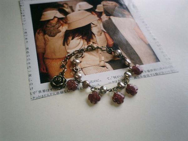 巴里・ジゼルシリーズです♪赤い靴の少女・・クラッシックゴールドの淡水パールとモスコバイトのブレスレットです!シックなお色でまとめてアンティークな雰囲気です♪淡水パールは6ミリから7ミリ位のバロックです♪シックなワインレッドのモスコバイトは10ミリのクロスです♪ひっそりと輝くワインレッドのお色と丸みを帯びたクロスがアンティークな表情です♪長さは全長22センチ位で調節自由です♪シンプルで飽きのこないいつまでも着けられるデザインを考えて作りました!お揃いのネックレスも出品しています♪ハンドメイドをご理解頂いてノークレーム、ノーリターンでお願いします