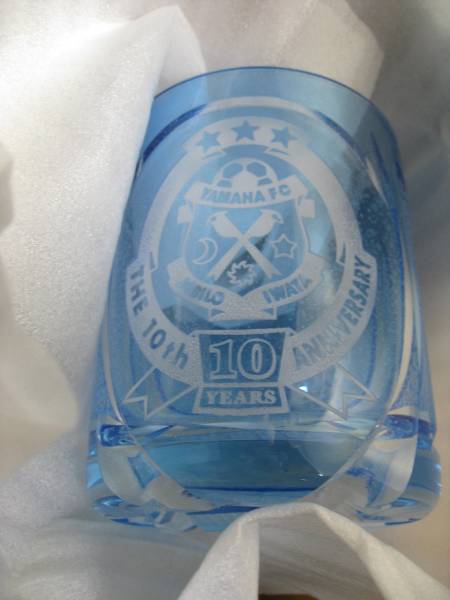 ジュビロ磐田10周年記念の江戸切子グラスです(新品未使用)。10周年記念グッズの1つで、たしか当時色違いのネイビーのものも販売されてたと思いますがこちらはサックスブルーの方になります。 他にもいろいろと出品していますのでよろしければお願いします。