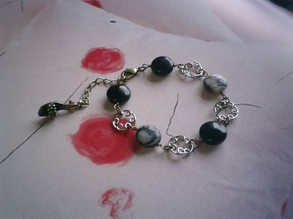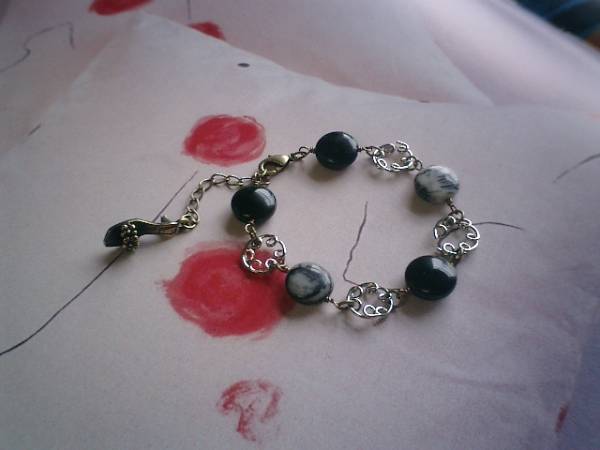 ニューヨークモダンシリーズ!シャープな模様のゼブラストーンとブラックオブシディアンのコインでシックなブレスレットを作りました♪間にキュートなデザインチャームを合わせて大人っぽい雰囲気です。シンプルで飽きのこないいつまでも着けられるデザインを考えて作りました!ゼブラストーンは12ミリ、ブラックオブシディアンは12ミリのコインです♪長さは全長23センチ位で調節自由です♪お揃いのネックレスも出品しています♪ハンドメイドをご理解頂いてノークレーム、ノーリターンでお願いします