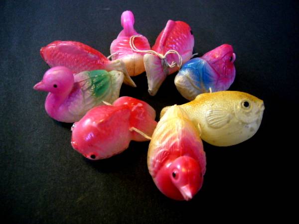 | 商品名 | 50'S【金魚・鯉・河豚他・セルロイド紐繋ぎ8点セット】難有り |