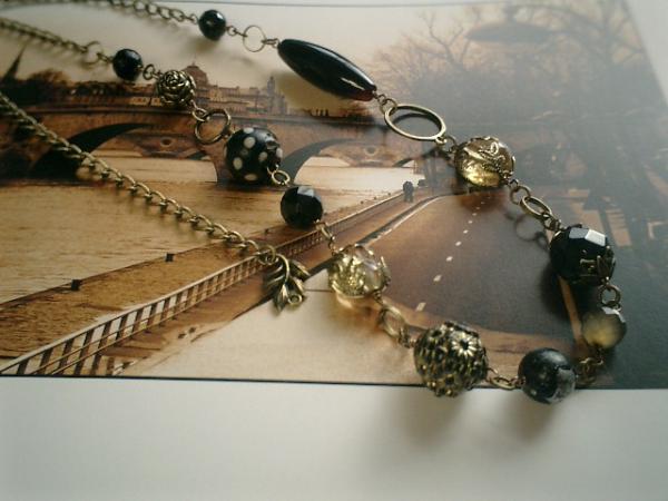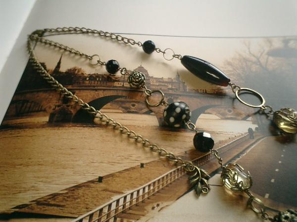 巴里・ミッシェルシリーズです♪ロマンチックを見つけて!繊細なシトリンやオニキスやトンボ玉やグレーアゲートやドイツビーズや薔薇のチャームやアンティークチャームの個性的なネックレスです!シックなお色でまとめてアンティークな雰囲気です♪巴里の裏町をイメージして作りました♪座金でおめかししたシトリンは12ミリ位です♪オニキスは30ミリのナツメ型や6ミリ、8ミリ、10ミリのラウンドカットです♪お花の模様のドイツビーズは13ミリ、グレーアゲートは6ミリ位です♪薔薇のチャームやアンティークチェームを合わせてロマンチックしています♪落ち着いたお色なので秋っぽいシックな印象です♪♪長さは全長61センチ位で調節自由です♪チョーカー風にしてもブレスにしても可愛いです♪シンプルで飽きのこないいつまでも着けられるデザインを考えて作りました!同じデザインの長さ違いも出品しています♪ハンドメイドをご理解頂いてノークレーム、ノーリターンでお願いします