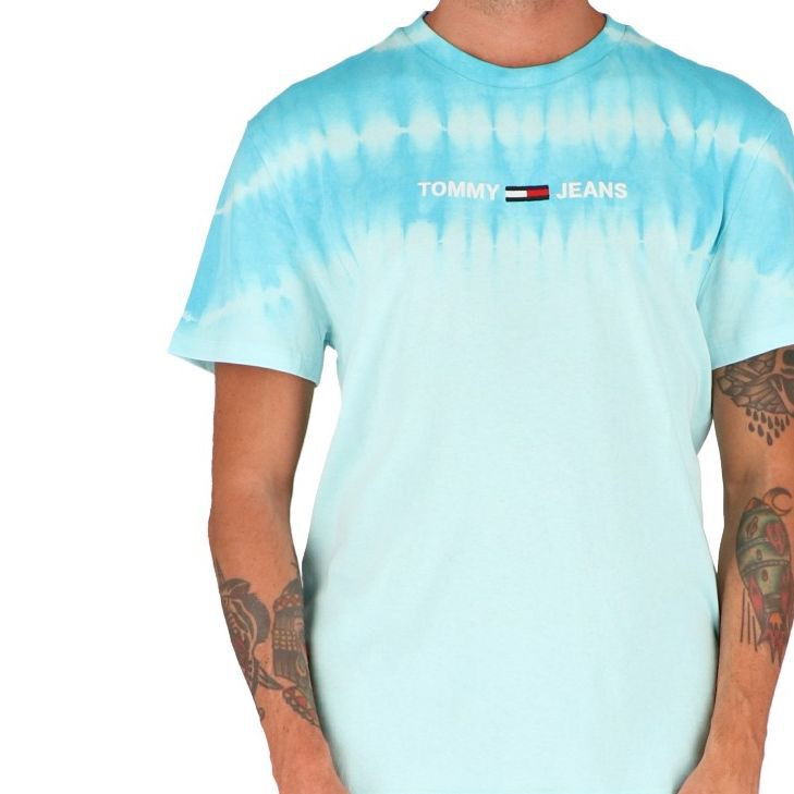 【USA正規品】 トミージーンズ TOMMY JEANS Tシャツ タイダイ グラデーション ライトブルー コットン100% ストリート HIPHOP 〈L〉