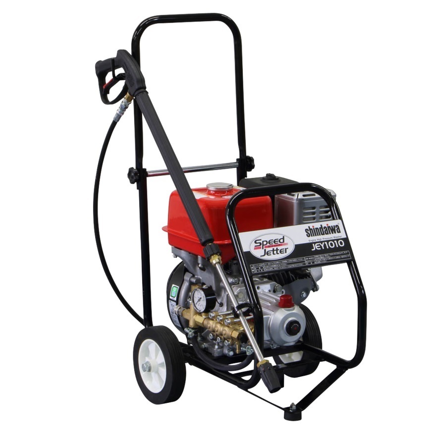 【商品詳細】 【新ダイワ JEY1010- エンジン高圧洗浄機】 土木・建築現場の各種洗浄に役立つスタンダードタイプ ■現場移動に便利な車輪付 ■アンローダーバルブ、リコイルスタータ ■エア抜き(手動) ■ワンタッチカプラ(片側) 寸法(長さ×幅×高さ)(mm):560×470×890 本体乾燥質量(kg):31 排気量(cm?):171 吐出圧力 MPa(kgf/cm2:)9.8(100) 吐出量(L/min):10 エンジン名称:ヤマハMX175 エンジン形式:空冷4サイクルガソリンエンジン 連続定格出力(kW/min-1):3.0/3600 エンジン始動方式:リコイルスタータ 使用燃料:レギュラーガソリン 燃料タンク容量(L):3.9 連続定格運転時間(h):3.4 低騒音dB(A):― 吸水ホース:3/8"×3.0m(ストレーナ付) 余水ホース:― 吐水ホース:1/4"×10m 噴射ガン(呼称):RL20 ■写真は、イメージです。 メーカーホームページはこちらから株式会社やまびこ 重量物は法人様のみ車上渡し元払いになります。 個人様は、運送会社様の営業所止めになります。 ※仕様は予告なく変更になることがございます。 ※下記注意事項の確認をお願いいたします。