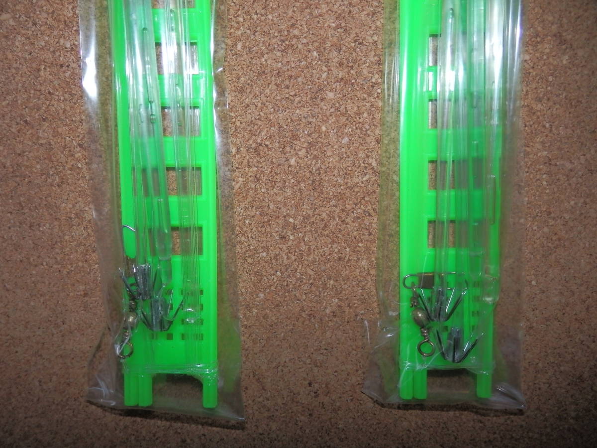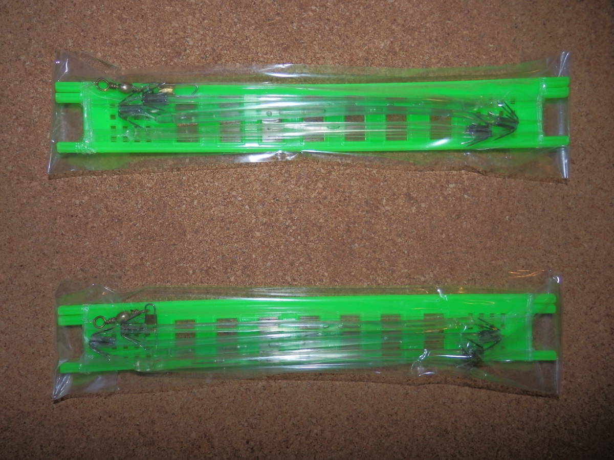 ⑤保管未使用品★2個セット あわ入り イカサビキ ブランコ仕掛け イカ角14cm4本 幹糸5号 間120cm 枝5号2cm グリーン | |||