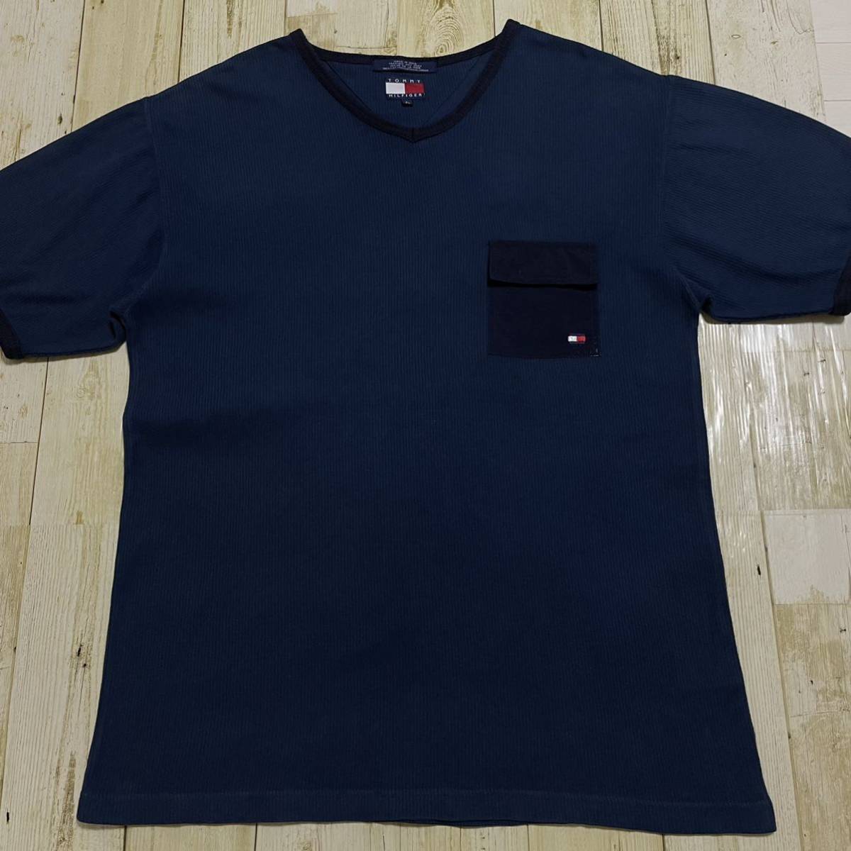 90年代 フラッグエンブレム 胸ポケット オールドタグ リンガーネック ビッグシルエット オーバーサイズ 厚手 半袖 Tシャツ 希少デザイン
