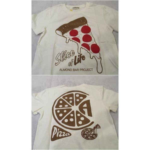 ☆【郵便(クリックポスト)対応】ALMOND BAR(アーモンドバー)サラミピザ柄半袖Tシャツ オフホワイト 150cm (58-2205)