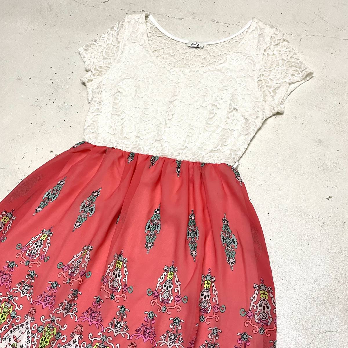 USA古着です。 トップス部分は総レース、正面は裏地付き、背面は裏地なしです。 ウエストには柔らかいゴム入り、スカート部分はシフォン生地。 裏地付き、ふんわりとしたフレアシルエットになります。 膝丈です。 洗濯済みになります。お探しの方におすすめです。 | |||