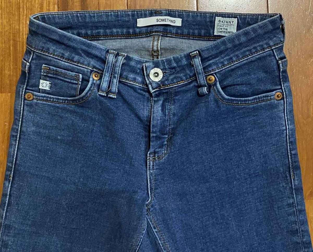 サムシングのストレッチアンクルスキニーデニム(ジーンズ)、SKINNY TIGHT FIT LOW RISE COMFORT STRETCH SEA06 ESV-9600 E520-2906です。色はインディゴブルーです。USEDで裾直ししておりますが状態は良いです(10段階中8程度)。ジッパーフライです。生地はストレッチ入りで綿99%、ポリウレタン1%です。正規品です((株)エドウィン、日本製)。サイズはXSでウエストは重ねずに平置きで約63cm、ヒップ約79cm、股上約20cm、股下約58cm、股下15cmのふともも部分約39cm、裾まわり約26cm、重量約370gです。発送はゆうパケットポストになります。
