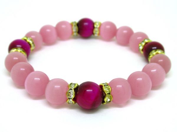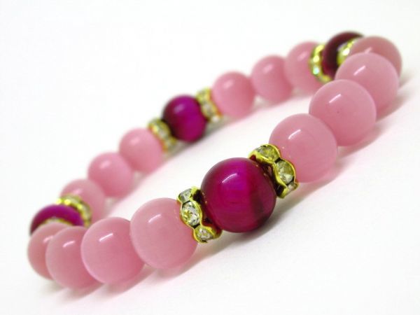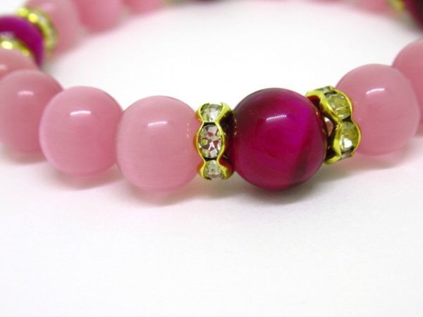 【ピンクタイガーアイ&キャッツアイ】天然石ブレスレットパワーストーン