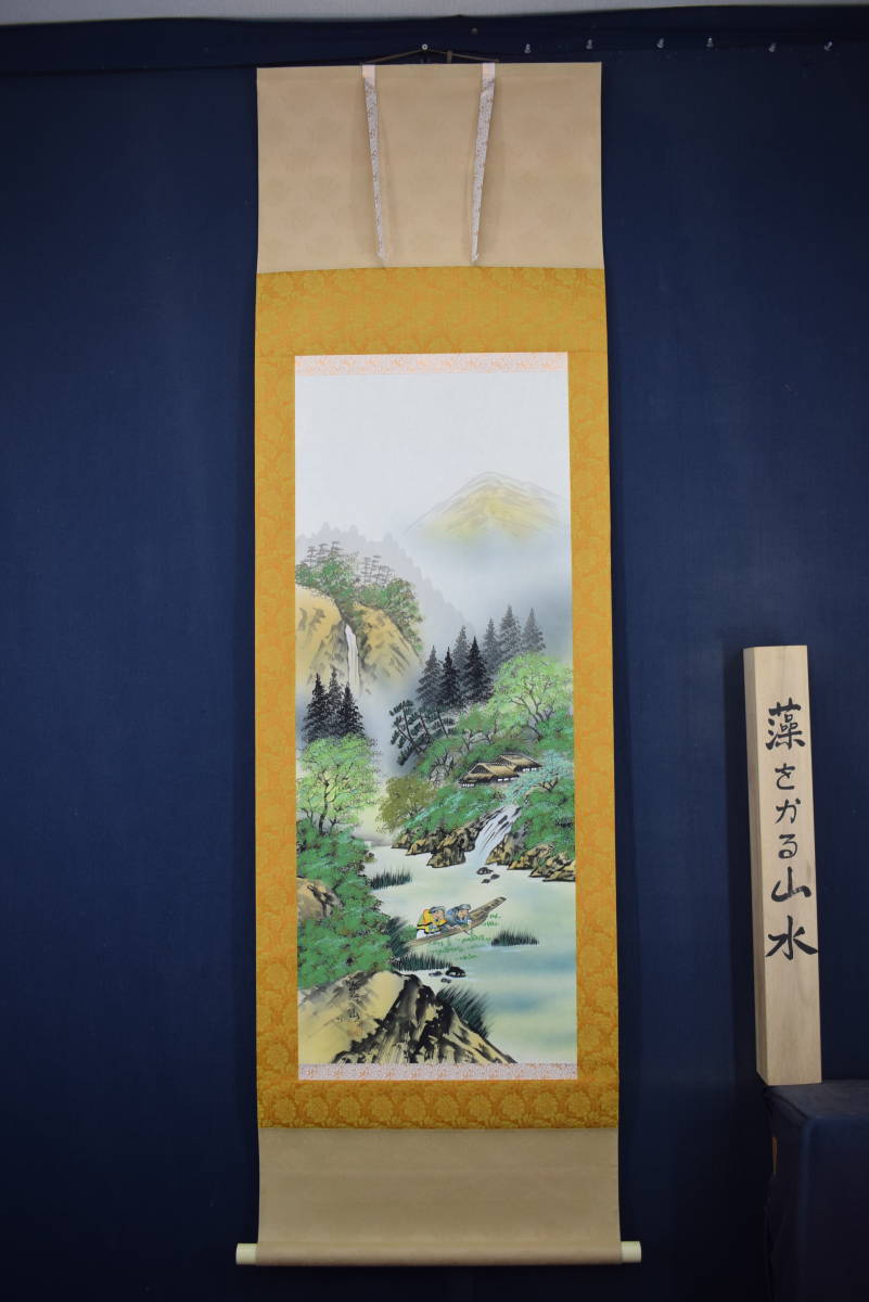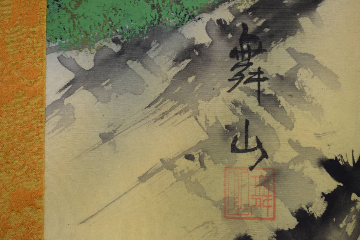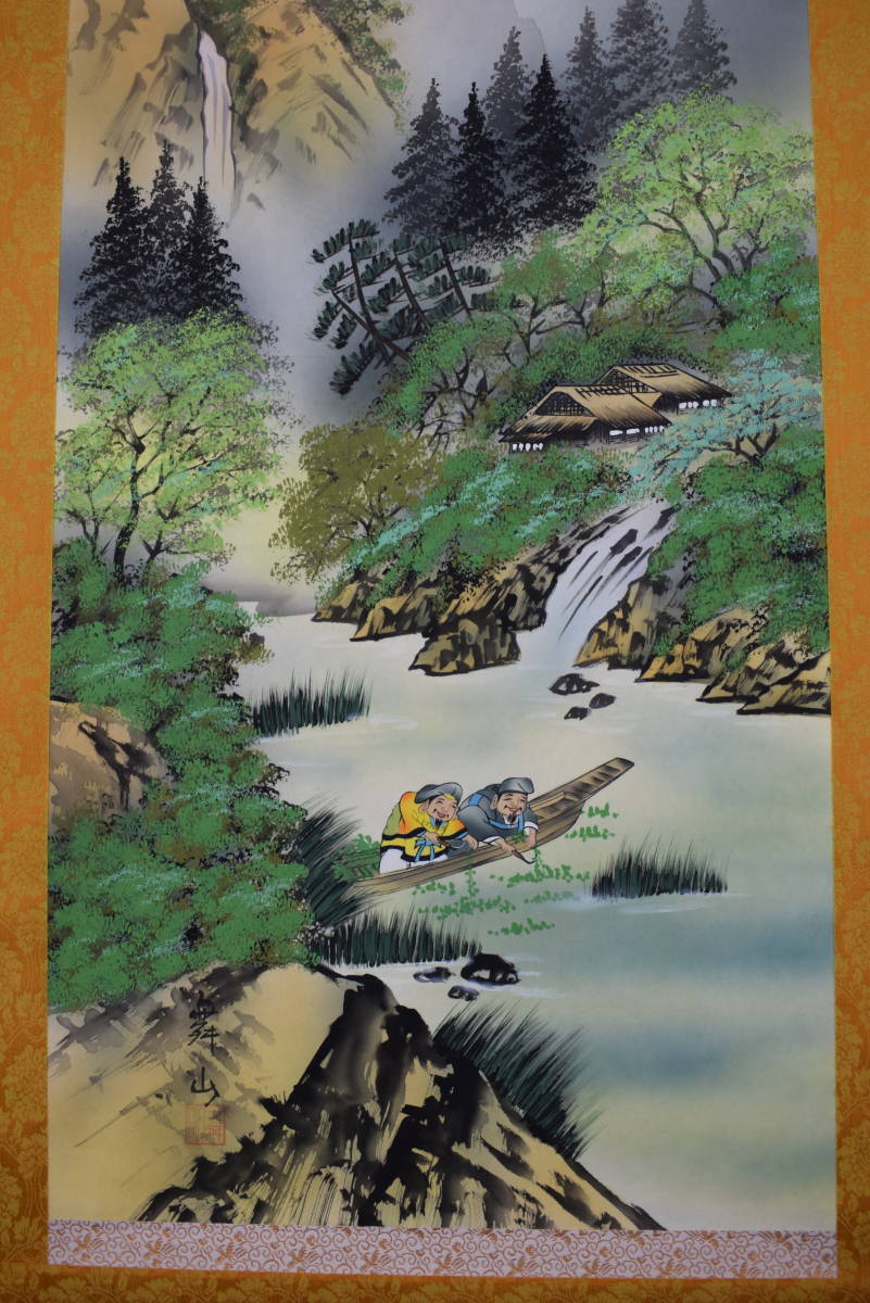 真作/舞山/藻をかる山水図/彩色山水/掛軸☆宝船☆Y-107