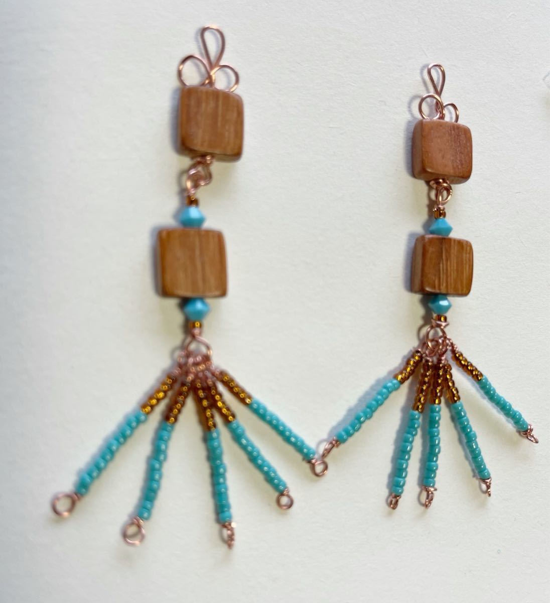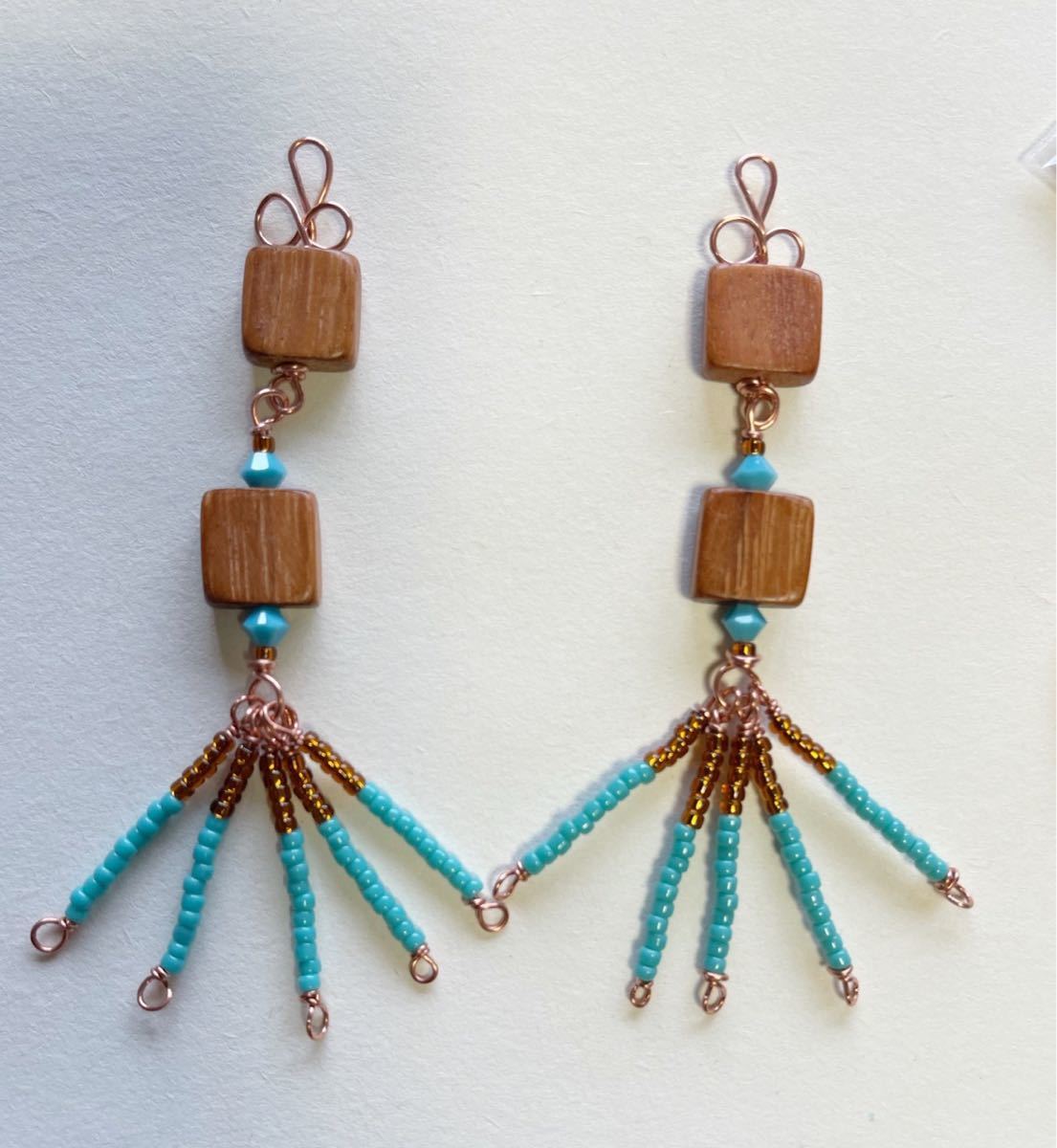 No.21 ウッドビーズとターコイズビーズのピアスイヤリング