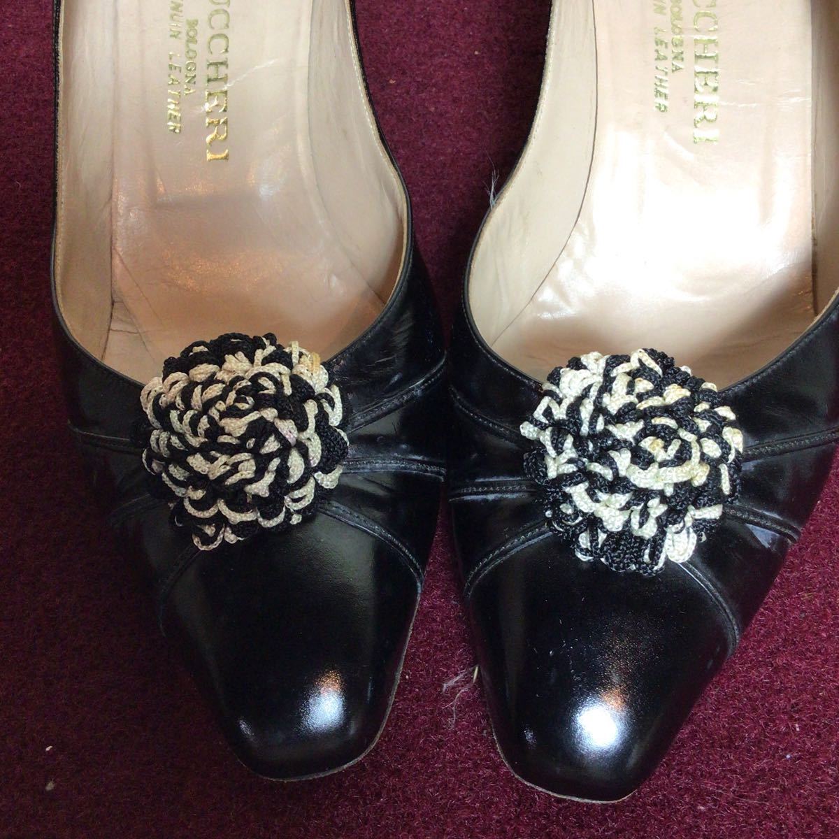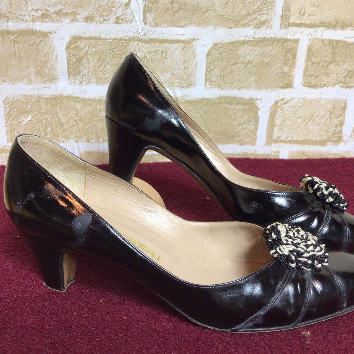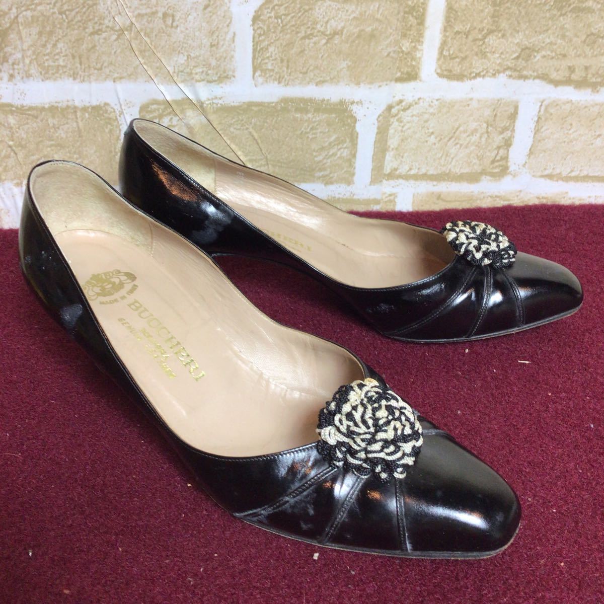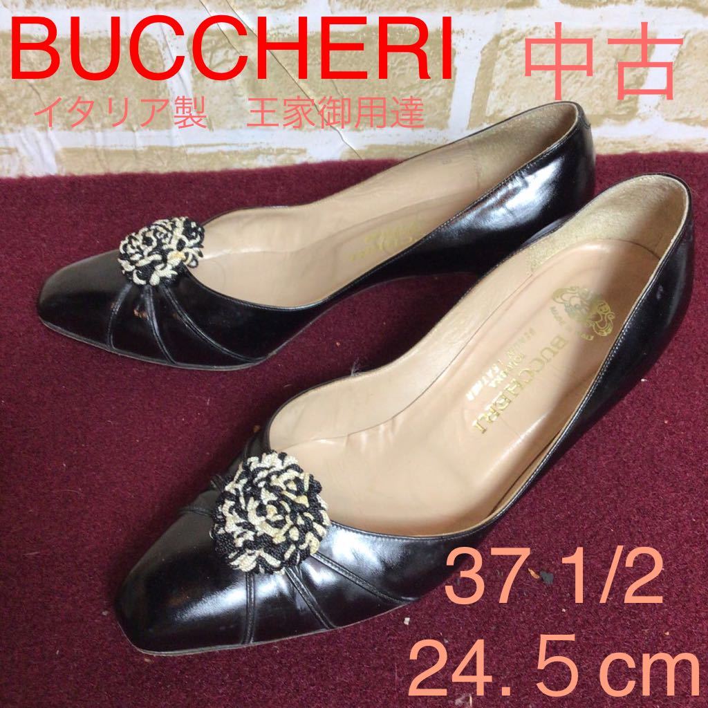【売り切り!送料無料!】A-118 BUCCHERI!ブッケリー!パンプス!37 1/2!24.5cm!花モチーフ!着脱可能!イタリア製!王家御用達!高級品!中古!