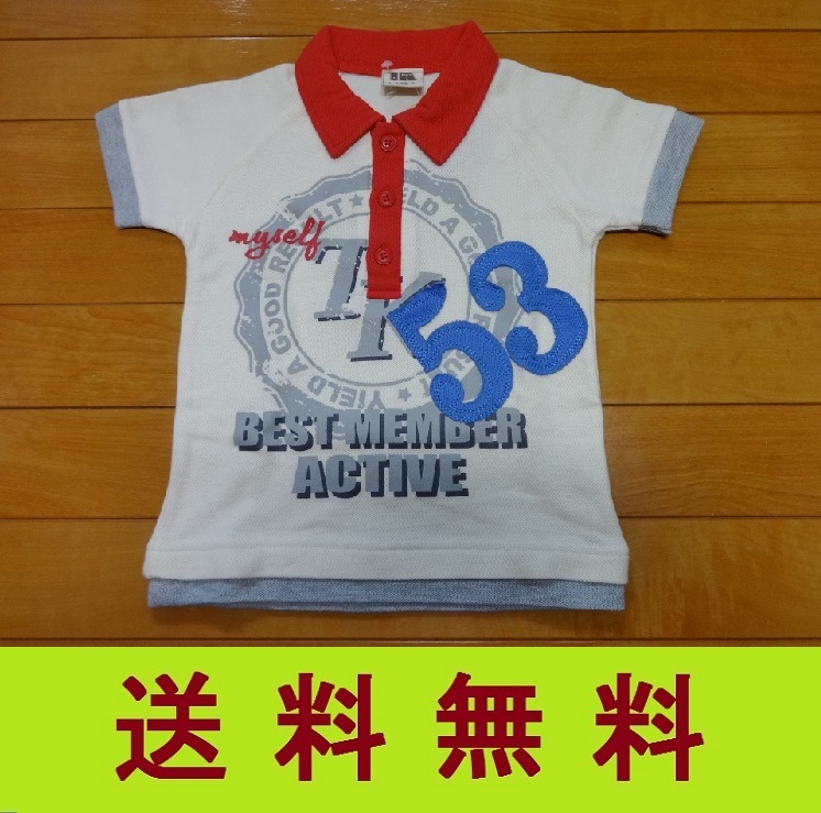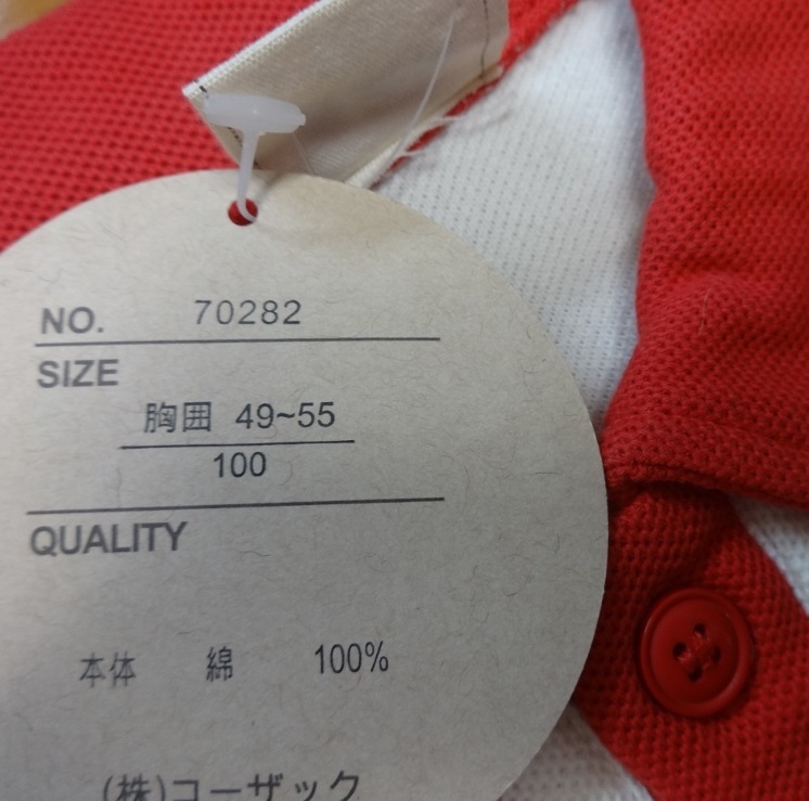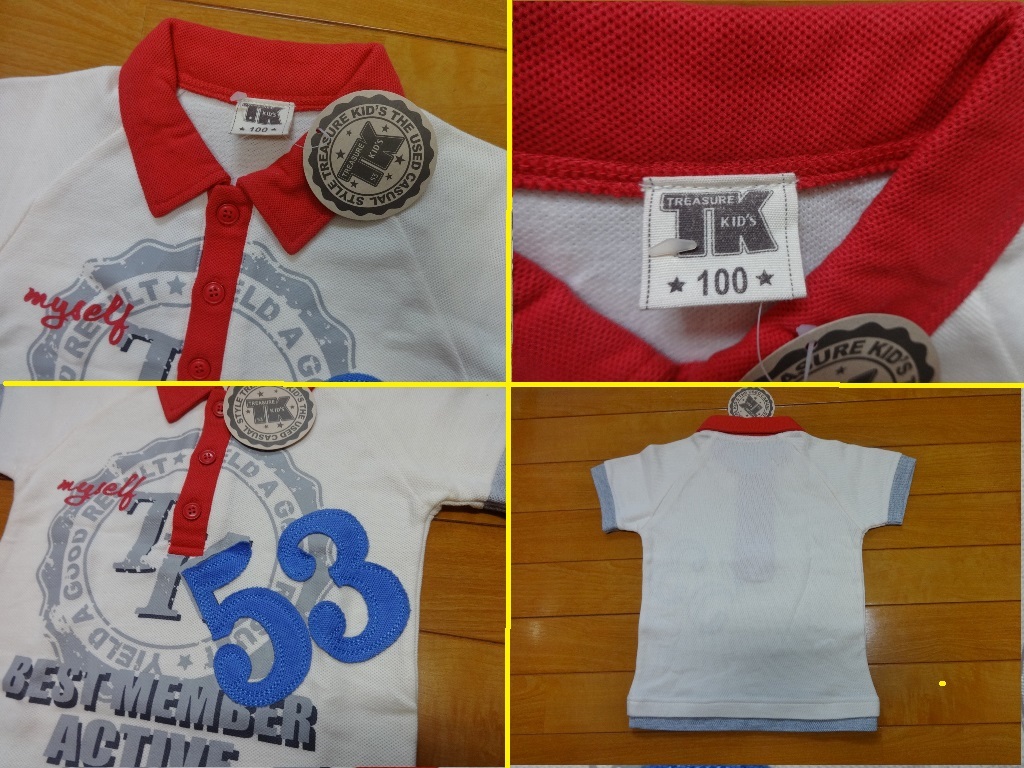新品 KIDS ポロシャツ【 100 cm 】クリーム色x赤えり 綿100% 53