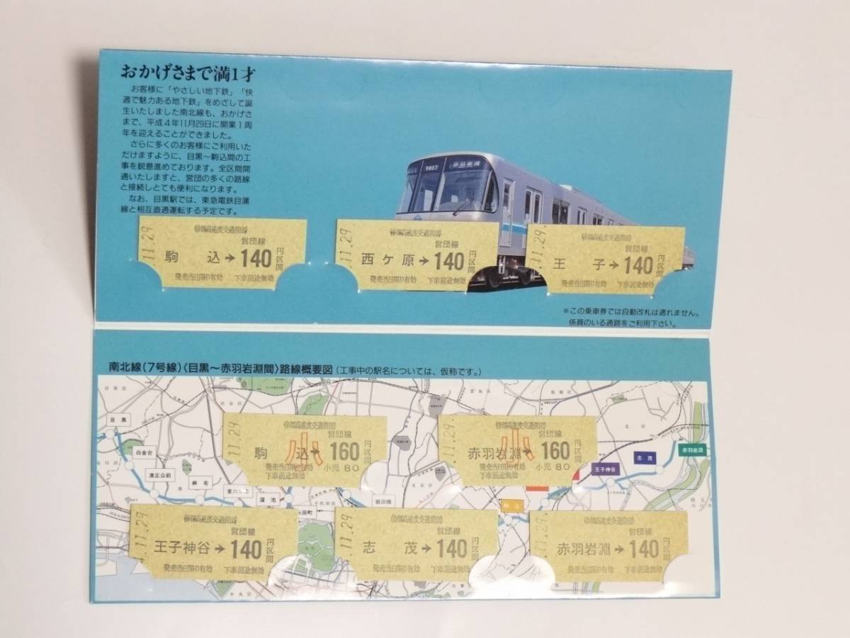 【営団地下鉄】南北線開業一周年記念乗車券 1992 B型硬券 売価1000円