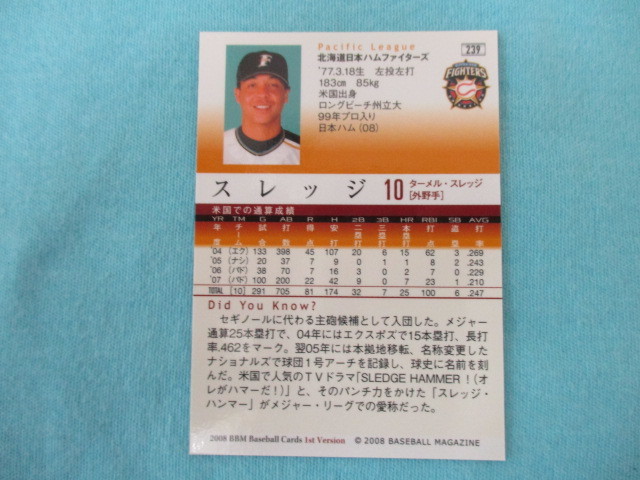 ★BBM 2008★1st Version〔239 スレッジ 北海道日本ハムファイターズ〕トレカ♪