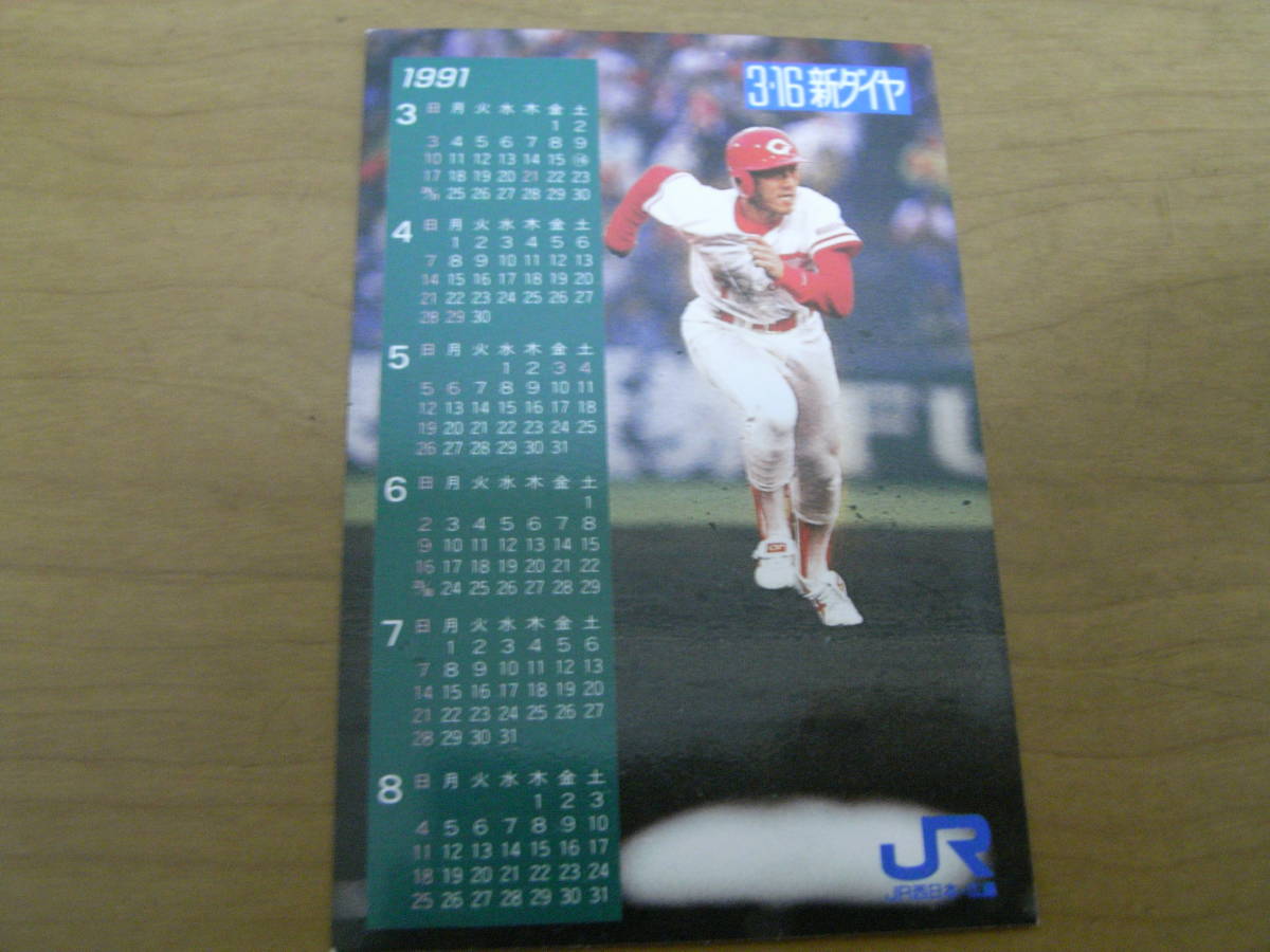 JR西日本広島 1991年3月~8月カレンダー/3月16日新ダイヤ JR春のダイヤ改正/広島カープ 野村謙二郎選手