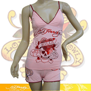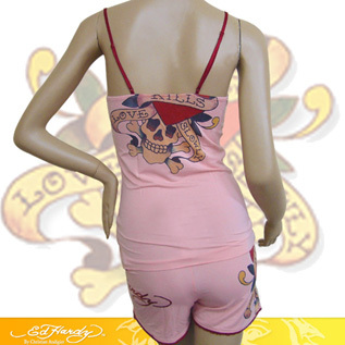 Ed Hardy Intimates Womens Foil Camisole Modal Foil Short Love Kills Slowly Light Pink ed-75/エドハーディー インティメイツ レディース ホイル ラブキル スローリー キャミソール&ショーツ セット ed-75
