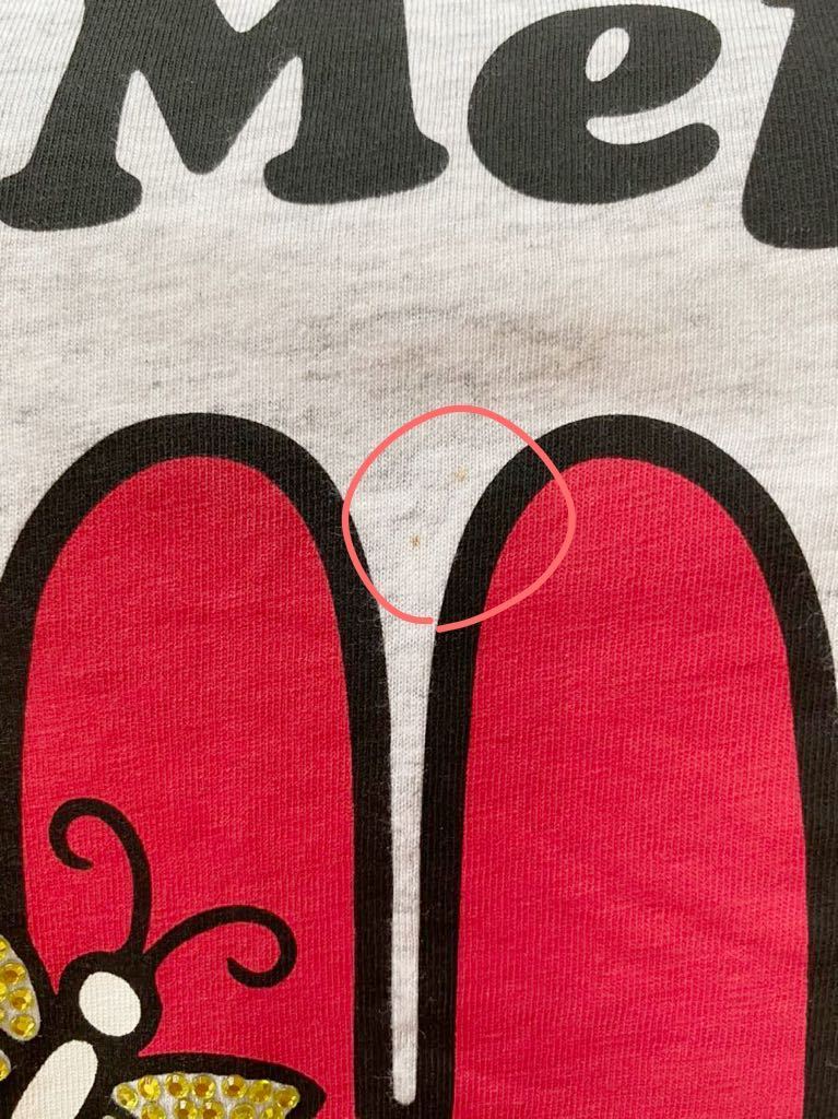 6枚目の写真にありますがマイメロちゃんの耳の間に小さな茶色い点が2点付いています。