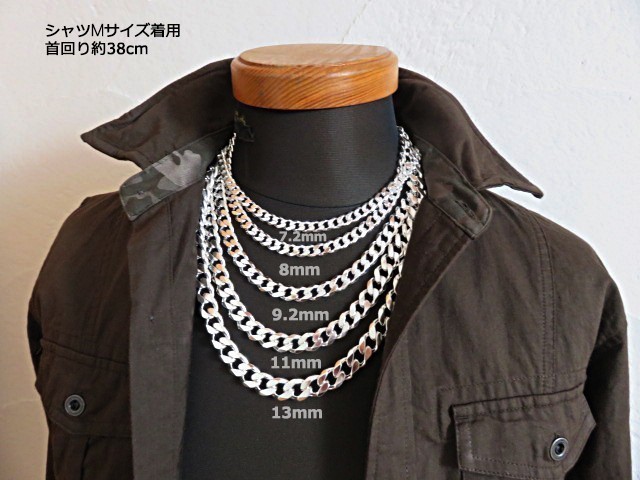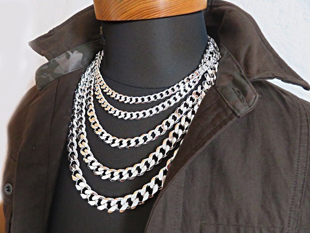 とてもワイルドで男らしい骨太チェーンですが首の太さや体格に合わせて自由にお選び頂けるよう33サイズ【幅9サイズ×各長さ】をラインナップさせて頂きました。