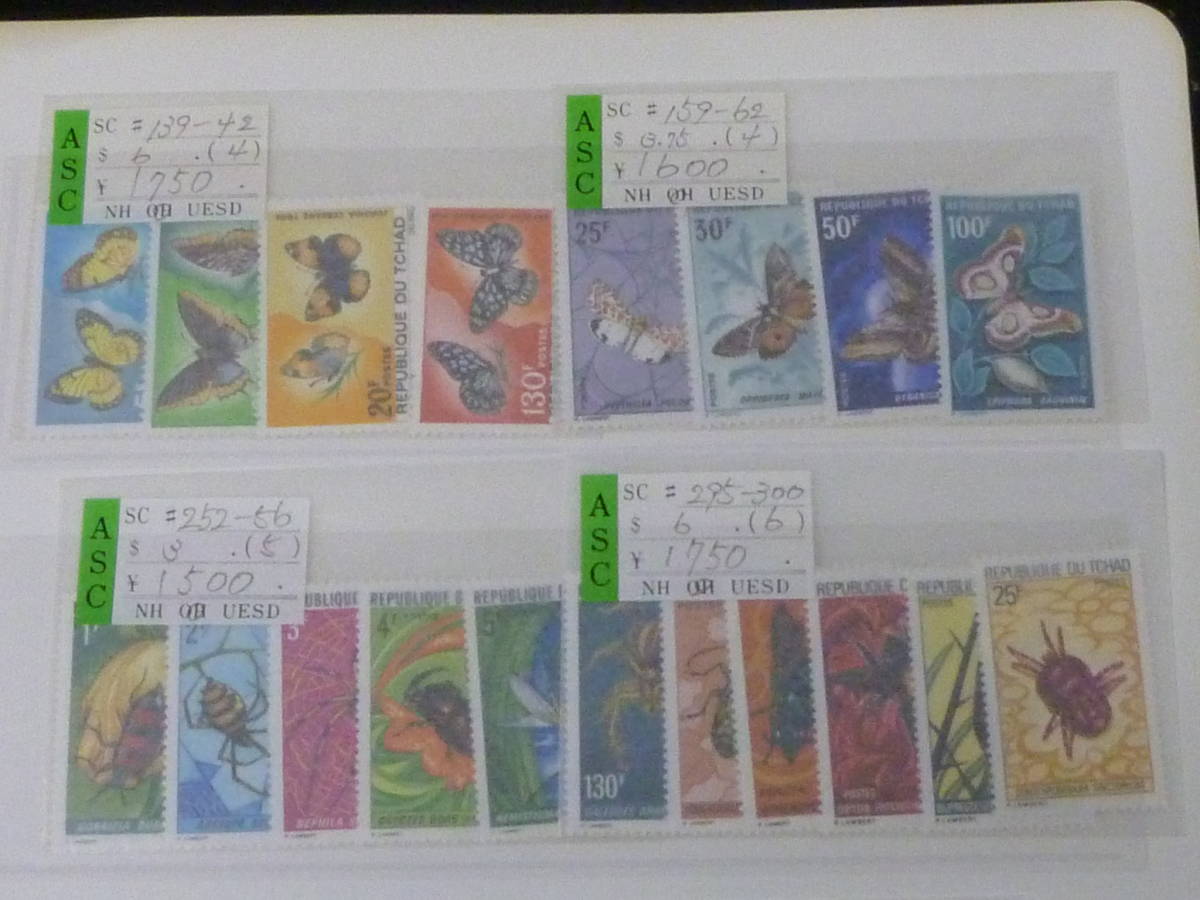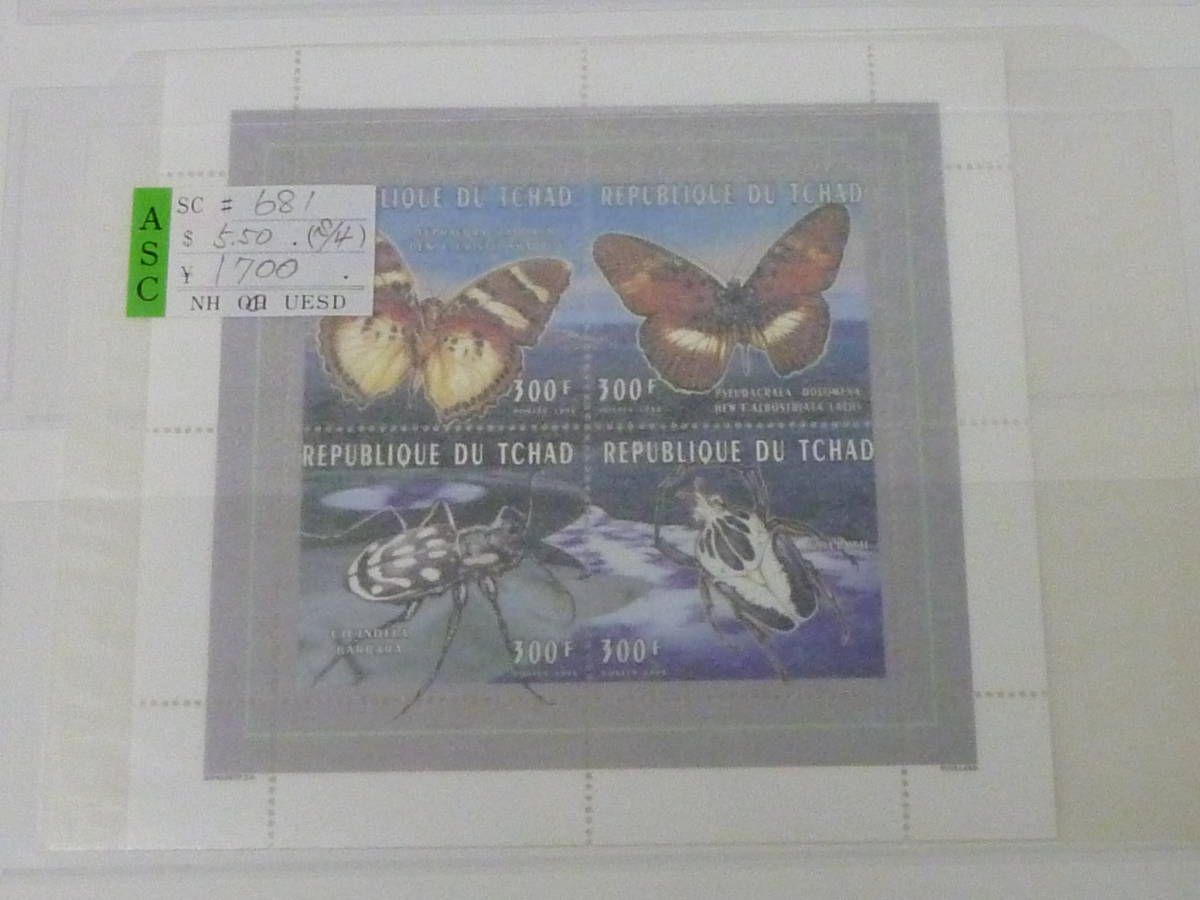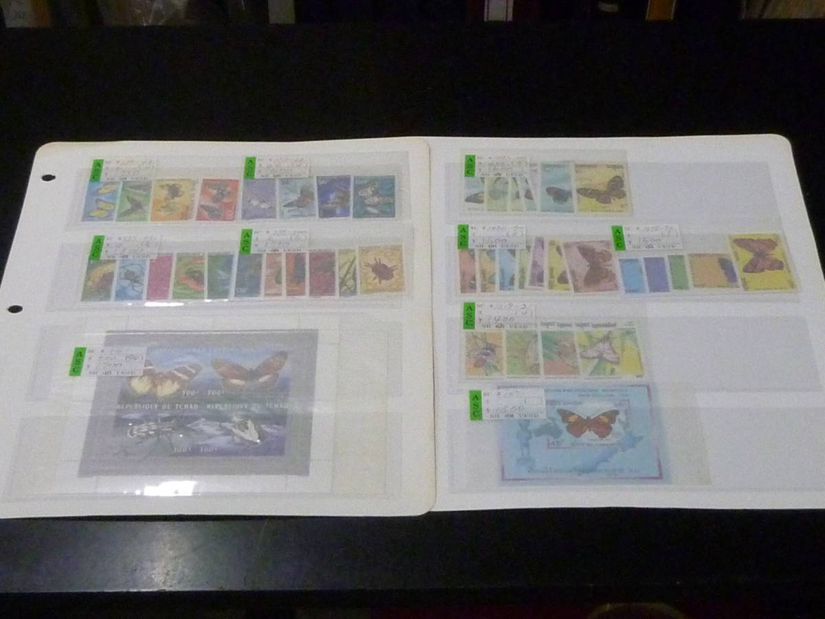 21MI S №28 世界各国 蝶切手 チャド・他 計42種+小型シート2種 2リーフ 未使用 ※説明欄必読