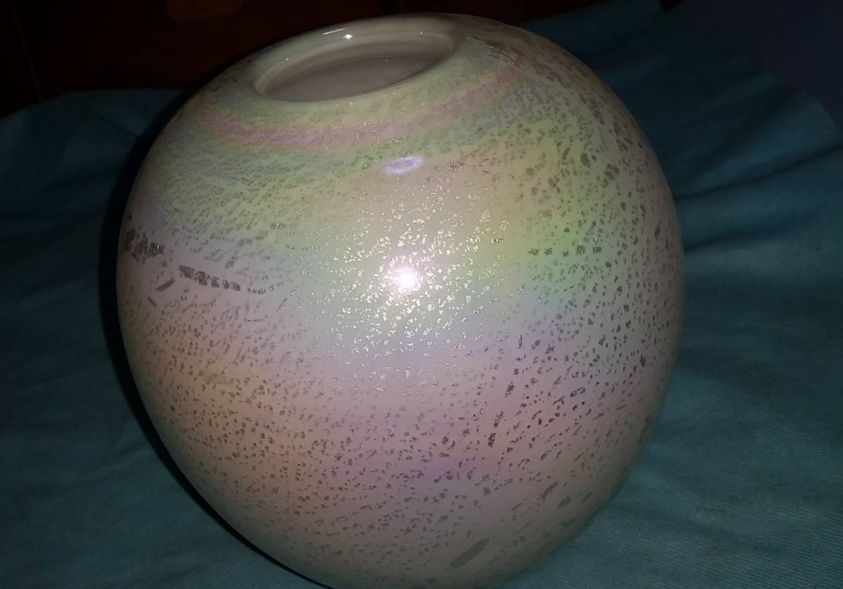 花瓶:ガラス製 パステルパールカラー 虹色 全高21㎝ 口直径7㎝ 胴太さ17㎝ 日用品 IES/オクパナ