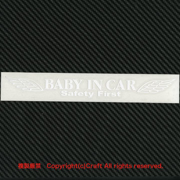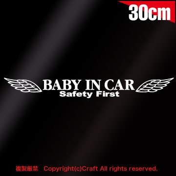 BABY IN CAR Safety First /ステッカー(天使の羽/白30cm)安全第一/ベビーインカー**
