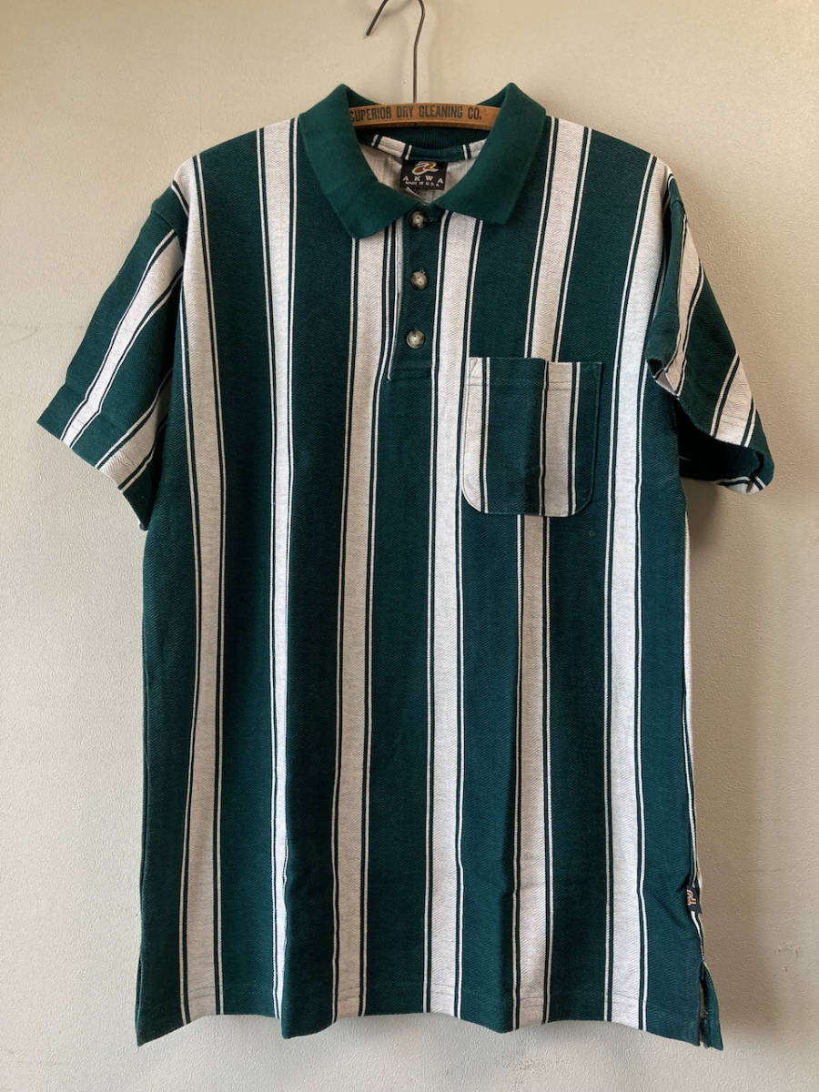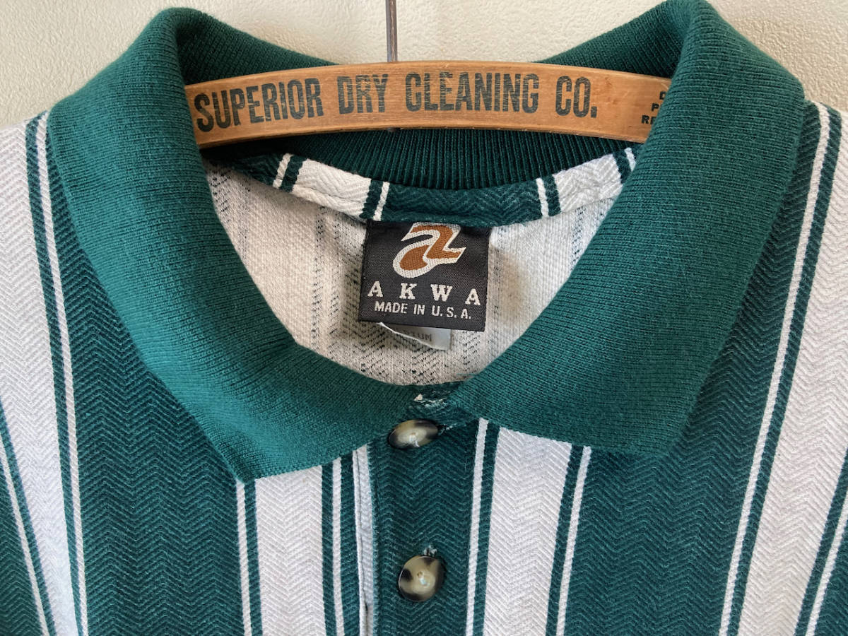 80s 90s ヴィンテージ UAS製 AKWA アクワ ポロシャツ ストライプ カリフォルニア ヘリンボーン ルーズシルエット HIPHOPファッション