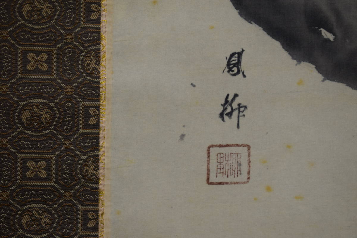 本紙は絹本肉筆です。 本紙は全体にシミがあります。表装は良好です。軸裏にシミがります。