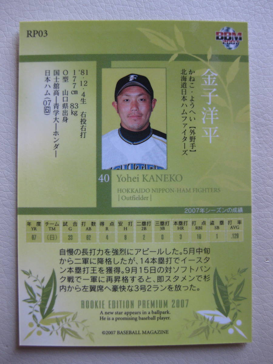 BBM 2007 金子洋平 RP03 北海道日本ハムファイターズ ルーキーエディションプレミアム
