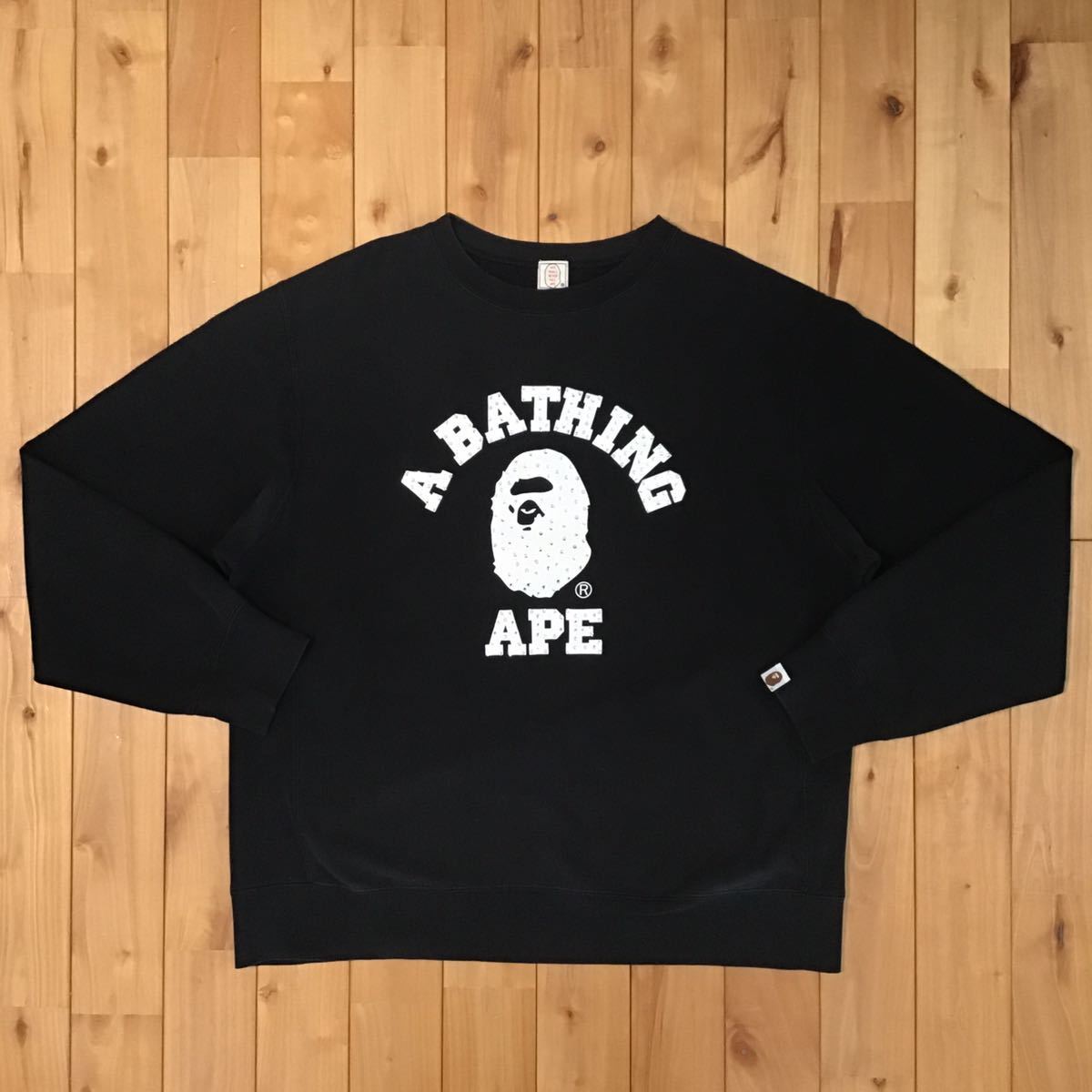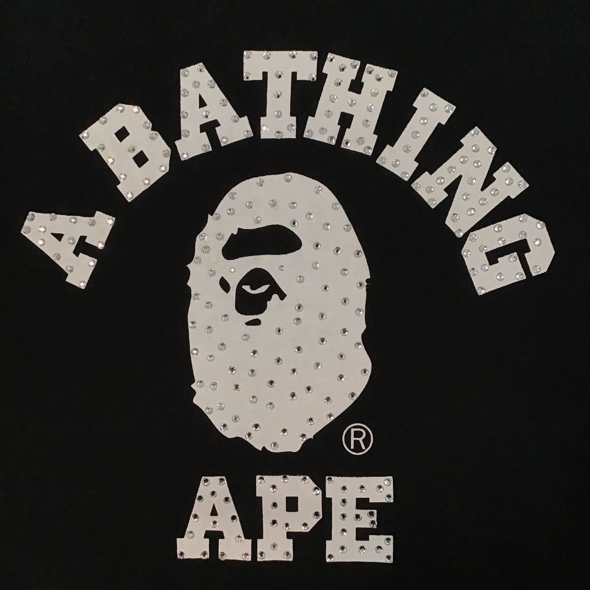 a bathing ape スワロフスキー カレッジロゴ 長袖スウェットブラック Lサイズ です★